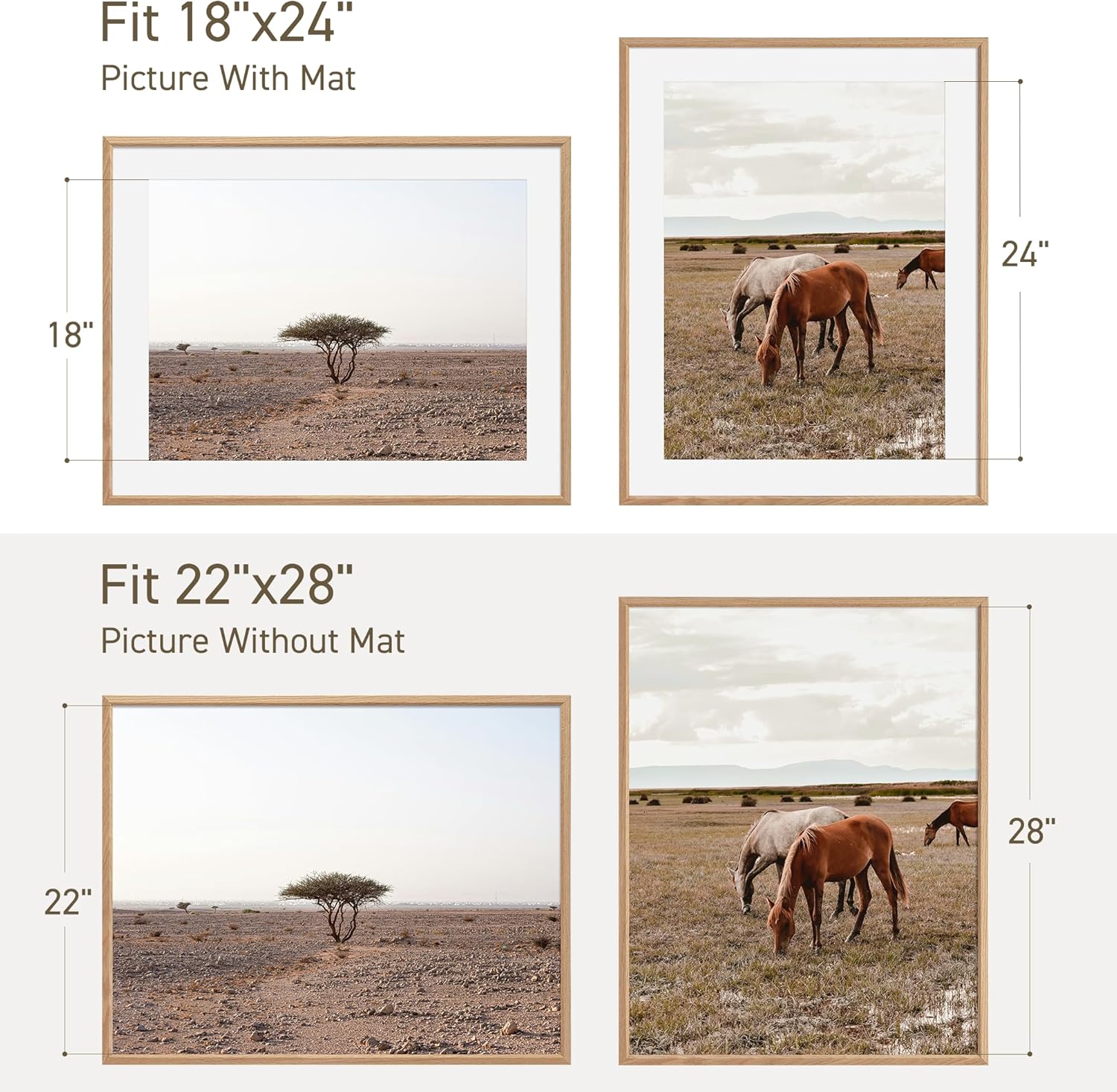 22x28 Poster Frame Set of 2 Natural Solid Oak Photo Frames with 18x24 Removable Mat Wall Hanging Large Handcrafted Frame with HD Plexiglass Wall and Tabletop Display Large Picture Frame