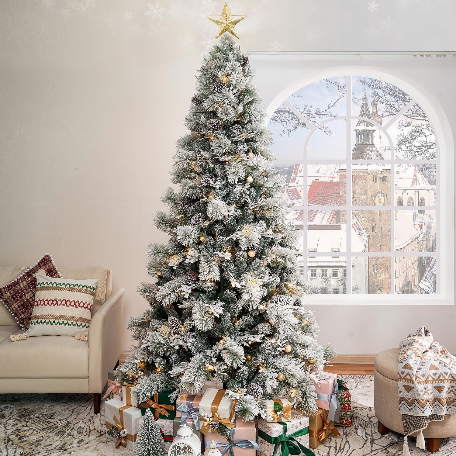 Naomi Home Darla Snowy Christmas Tree 6.5ft/Snow Flocked