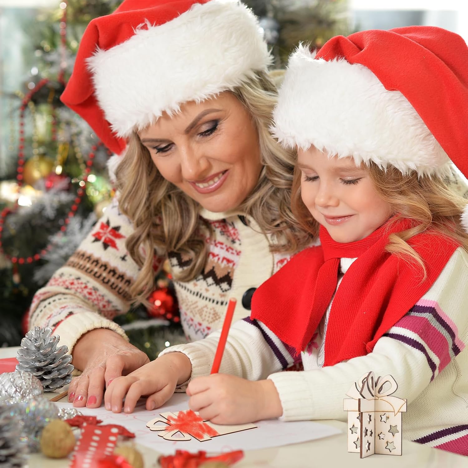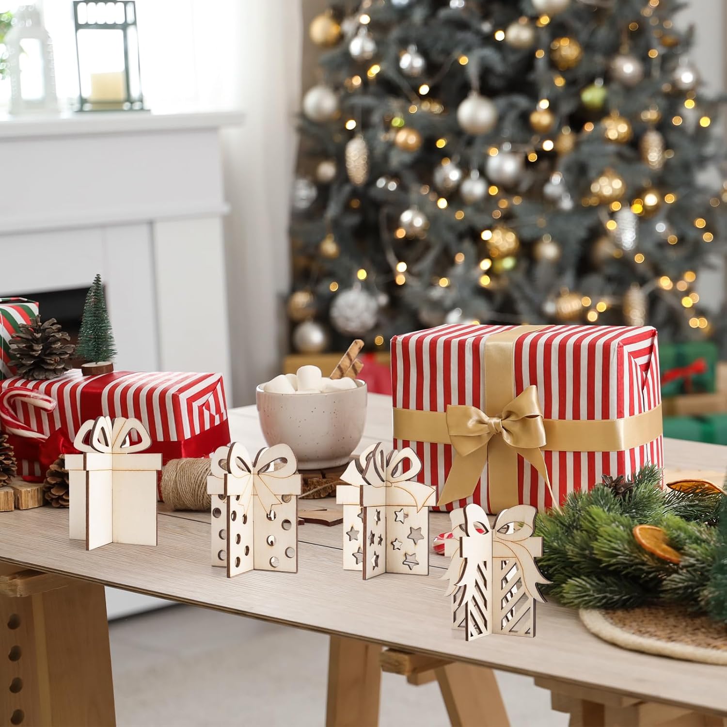 COCHIE DIY 3D Christmas Gift Box Wood Crafts to Paint for Kids Adults, Paintable Unfinished Wooden Slices for Craft, Xmas Gift Boxes Cutouts Ornaments for Painting Decorations (24 PCS)