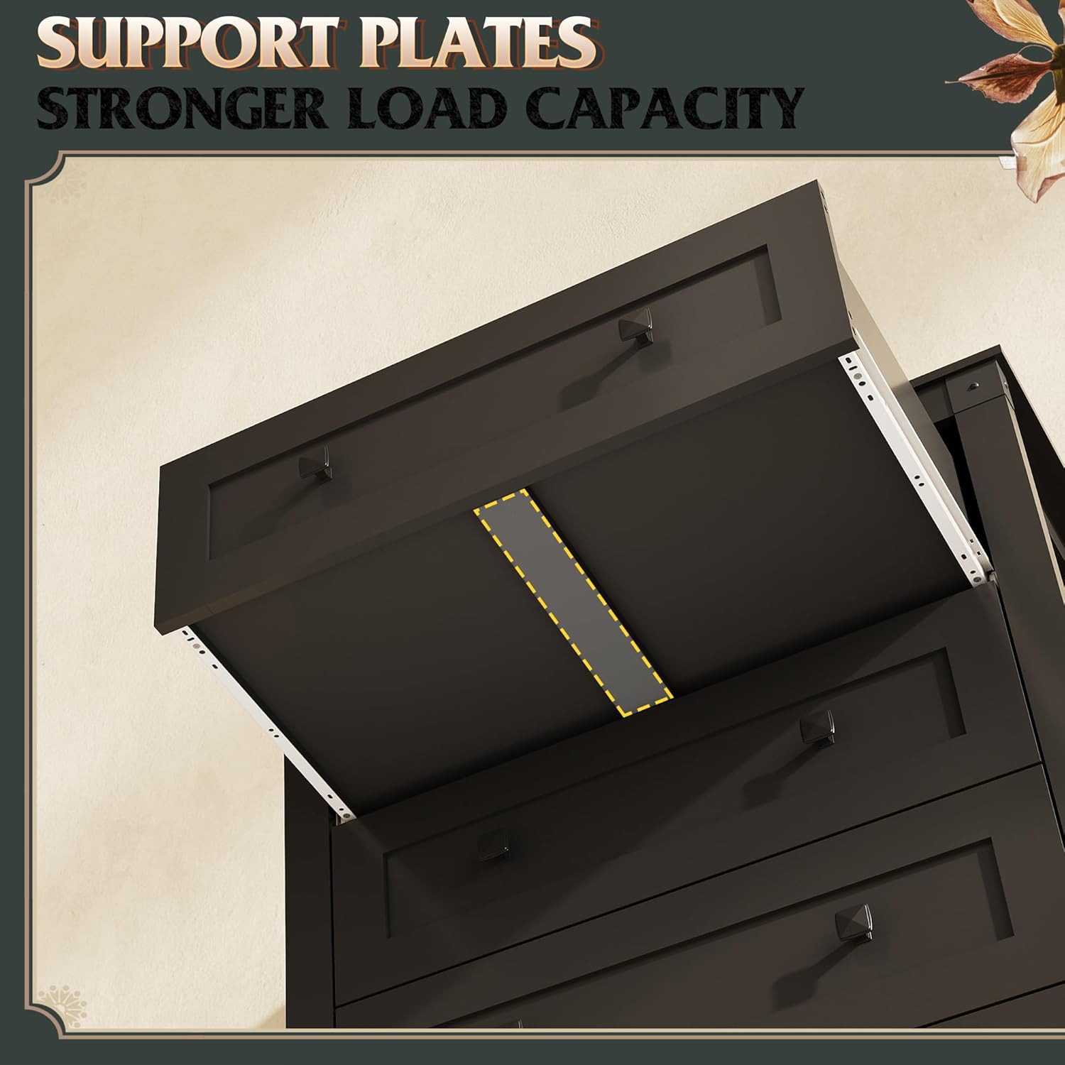 - 🎄【Structure Stable and Smooth】The dresser drawer features a middle support plate for stability and stronger load capacity, smooth metal slides for easy pulling, which allows drawers to open fully without tipping for better storage.