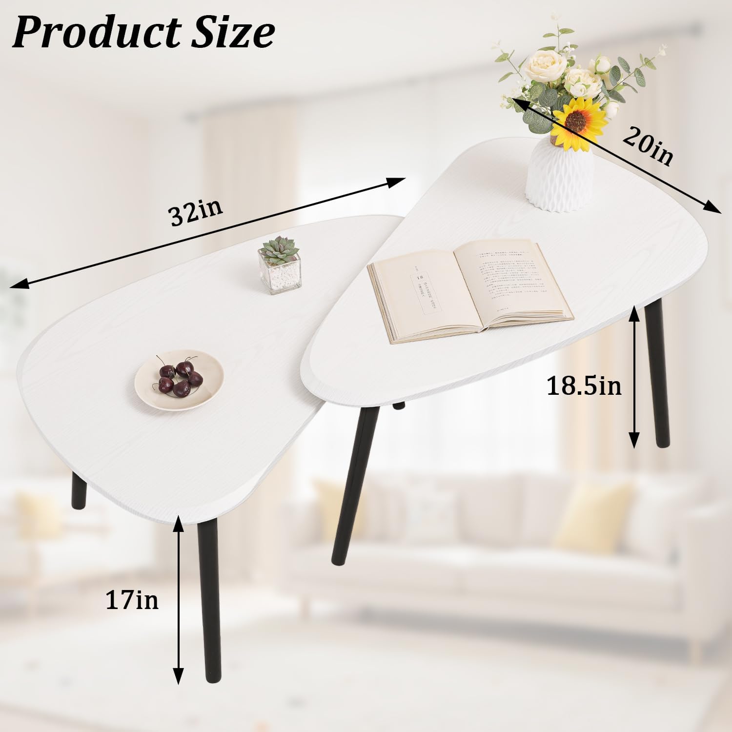 Nesting Triangle Coffee Table End Tables Set of 2 for Living Room Bedroom, Industrial Small Stacking Side Tables for Couch, White