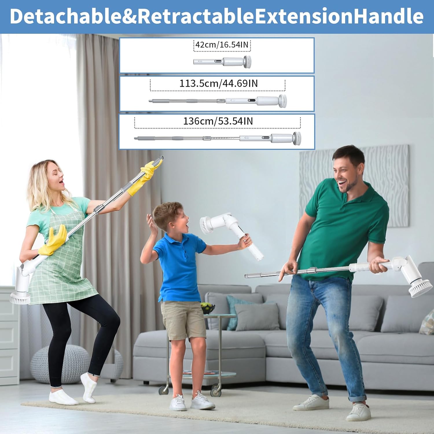 - Ergonomic & Adjustable for Comfort: The 16.5 to 55.1-inch adjustable long handle allows for comfortable cleaning without bending or kneeling. The IPX7 waterproof rating ensures safety and effectiveness in wet environments, such as bathrooms and showers.