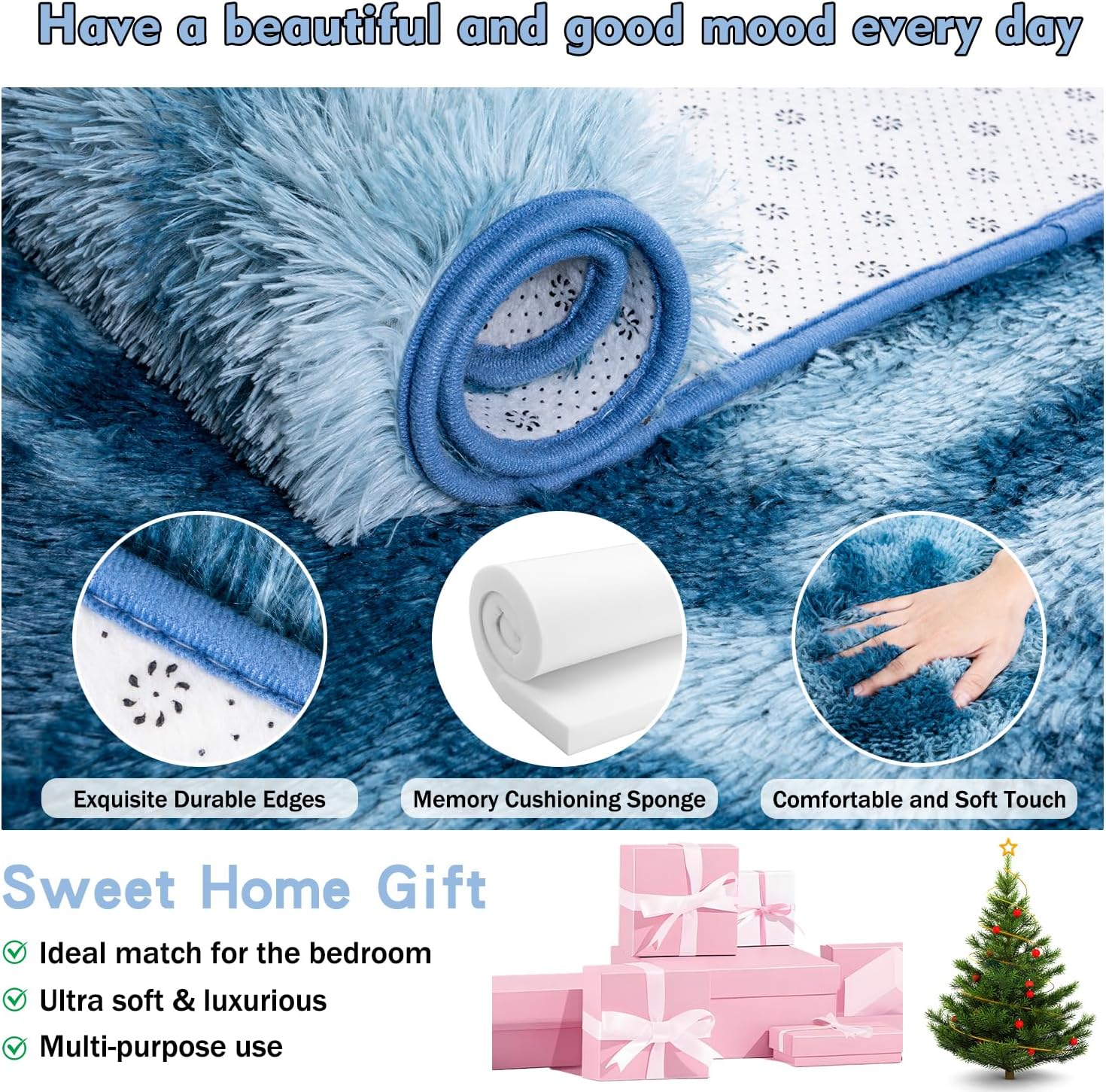 - Non-slip Rug--Enhanced Stability:Don't overlook the importance of slip resistance! The Rezutan fuzzy rug features a specialized non-slip backing with dot-molded granules, providing a firmer grip on any type of flooring. Additionally, the tight edging process ensures minimal shedding, maintaining the rug's fluffy appearance, makeing it a practical choice for any space. Perfect for kids and pets playing on the fine throw rugs for living room.