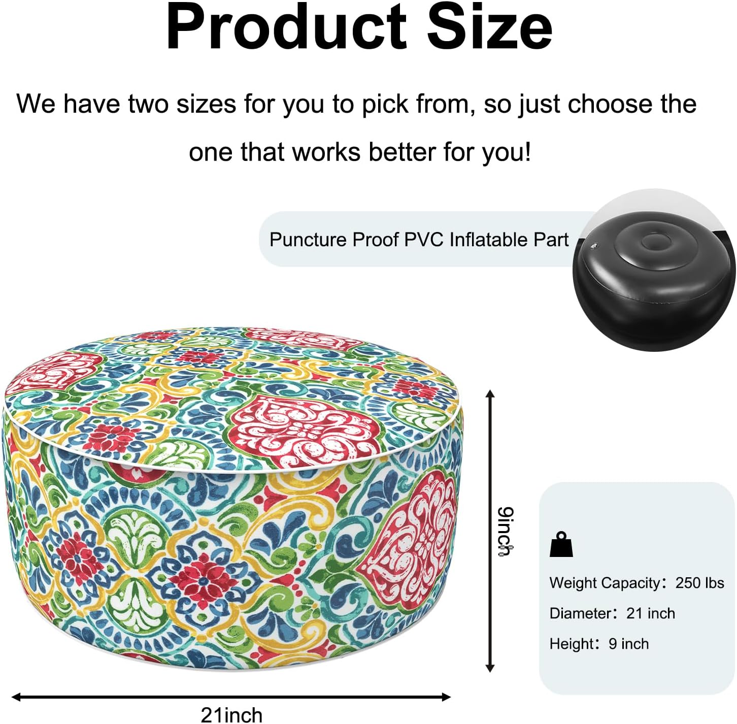 - 【PACKAGE INCLUDING】 - Foot pump not included and it NEEDS to be purchased SEPARATELY. The package contains one thick PVC explosion-proof liner inflatable ottoman inner with dimension D21 x H9 and one printed inflatable footrest stool cover