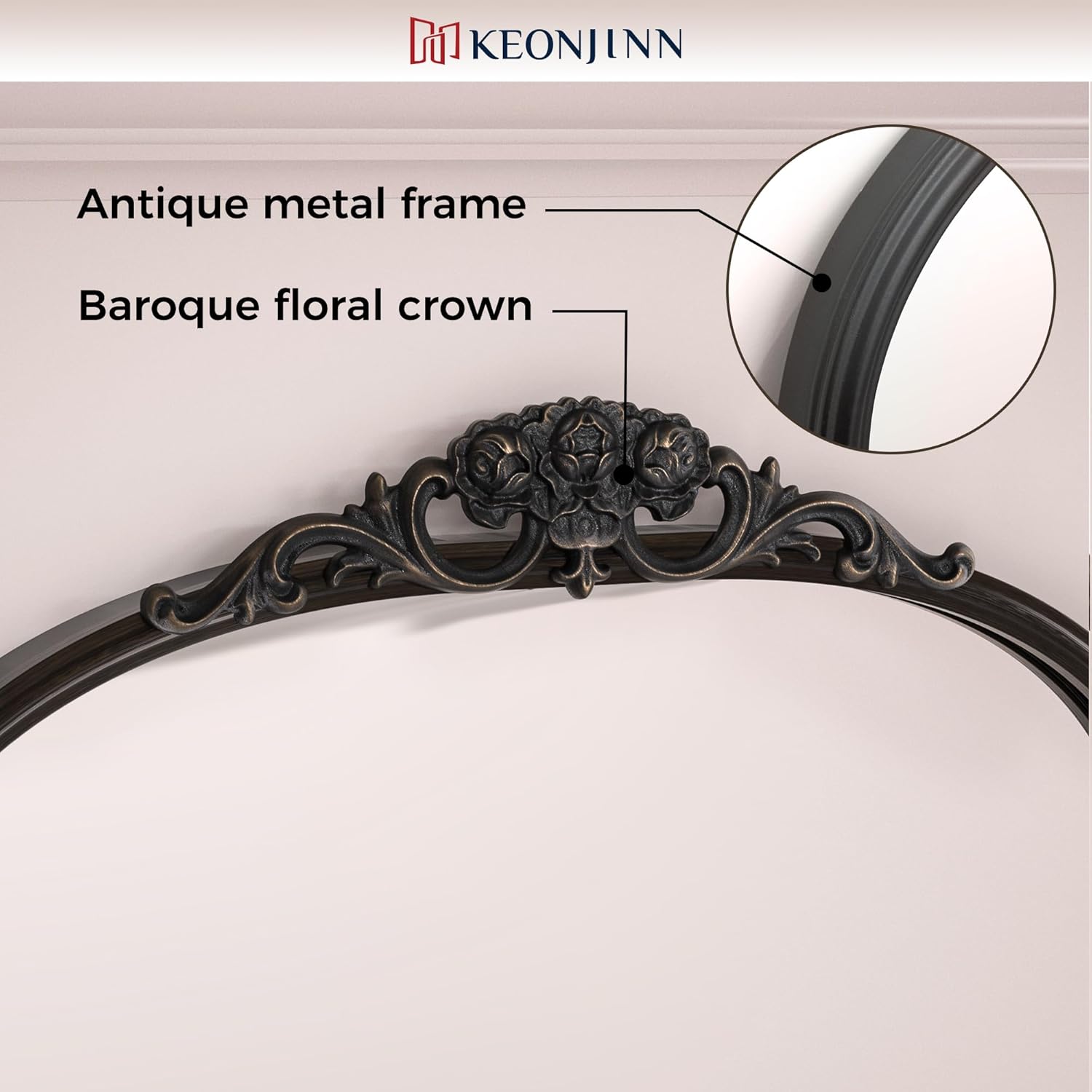 - 【Baroque-inspired Charm】 Keonjinn Antique Arched Mirror is a timeless piece designed to elevate your wall décor. Inspired by the opulence of the Baroque era, this mirror exudes historical charm with its graceful arched design and intricate wooden floral crown, creating a captivating focal point in any room.