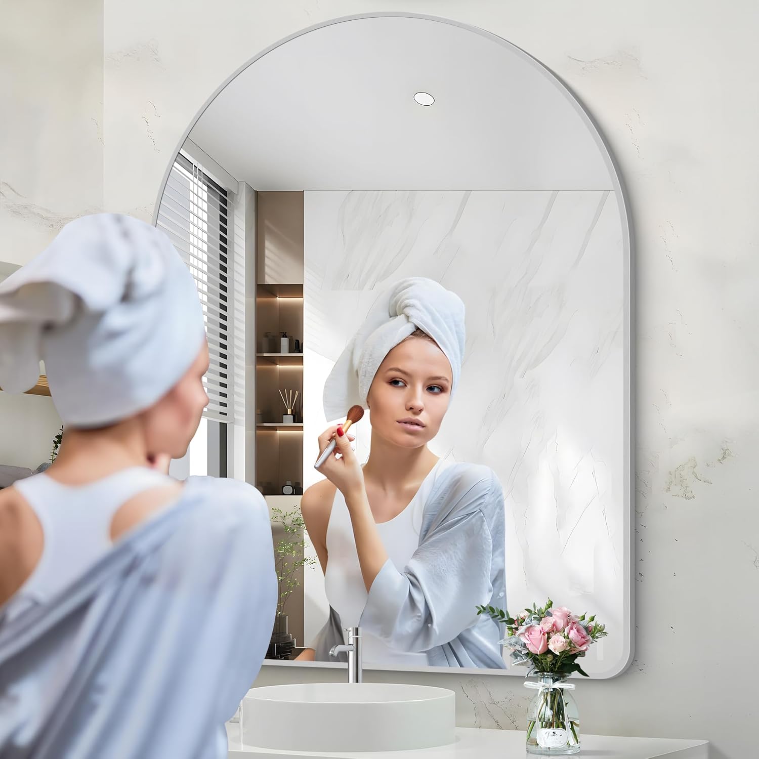 - Arched Bathroom Mirror Design: The Arched-top wall mirror makes your bathroom more elegant and classy, which especially attracts your eyes.bathroom mirrors for over sink,living room wall decor, silver arched mirror Ideal for wall mirrors decorative, silver mirror for bathroom make the space more brighter and spacious.