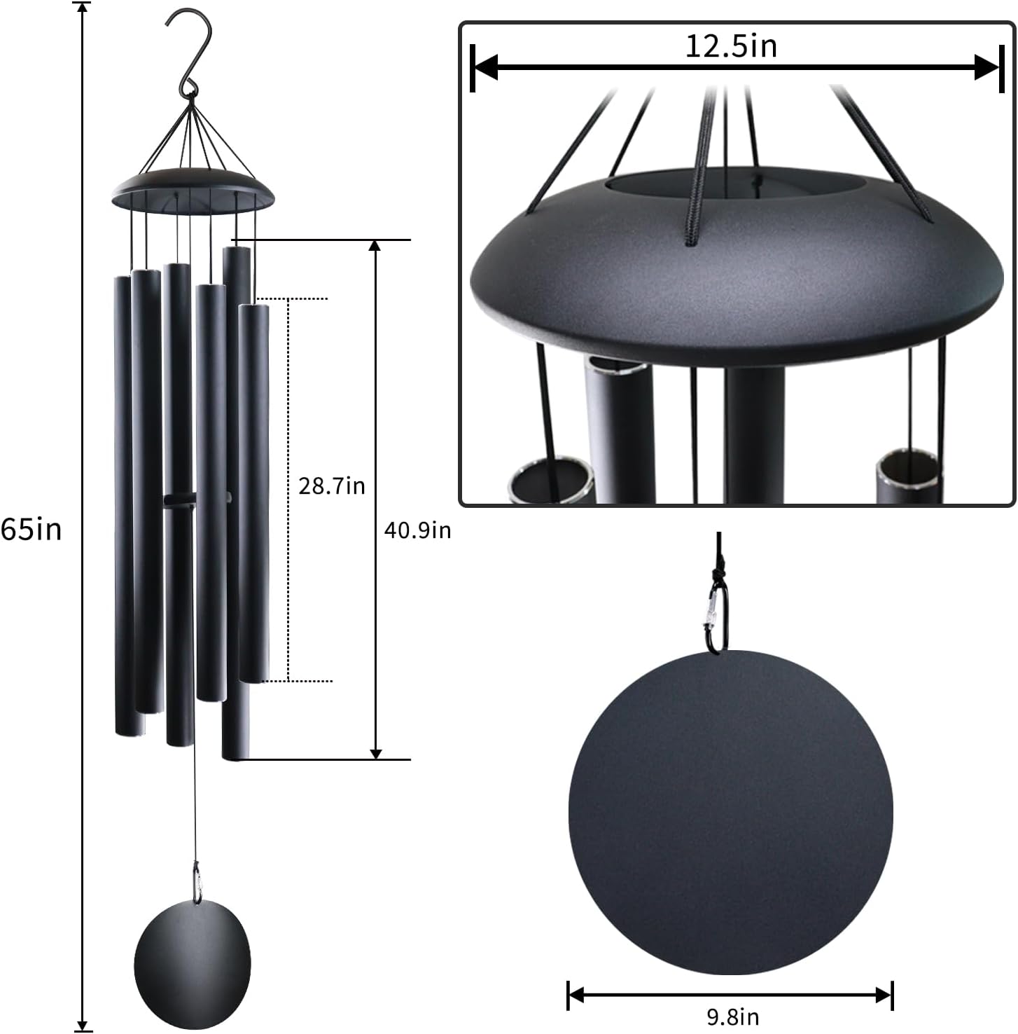 - 65 Inch large Wind Chimes - The longest tube of the large wind chimes is 40.9 Inch,diameter is 2.27 Inch.6 aluminum powder-coated tubes,every metal tube of this large wind chime is hand-tuned by our professional tuning experts to achieve a superior musical performance.Heavy duty nylon cording high density striker for a clear tone and resonances.