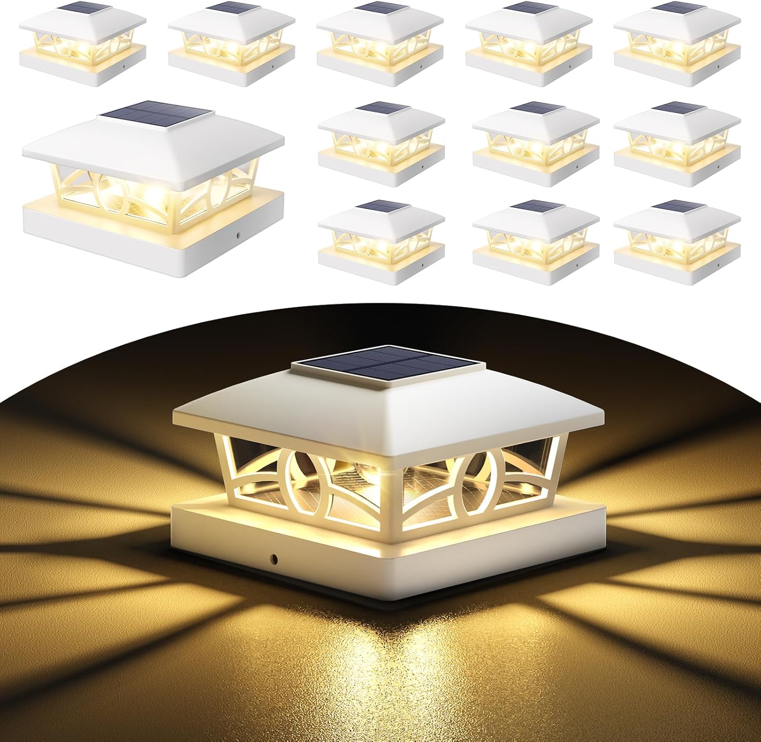 NIORSUN Solar Post Lights Outdoor, Fence Post Solar Lights Warm White Outdoor Waterproof Edison LED Bulbs Garden Patio Fence Deck Decor, Post Cap Lights 4x4 5x5 Wood Vinyl, White 12 Pack