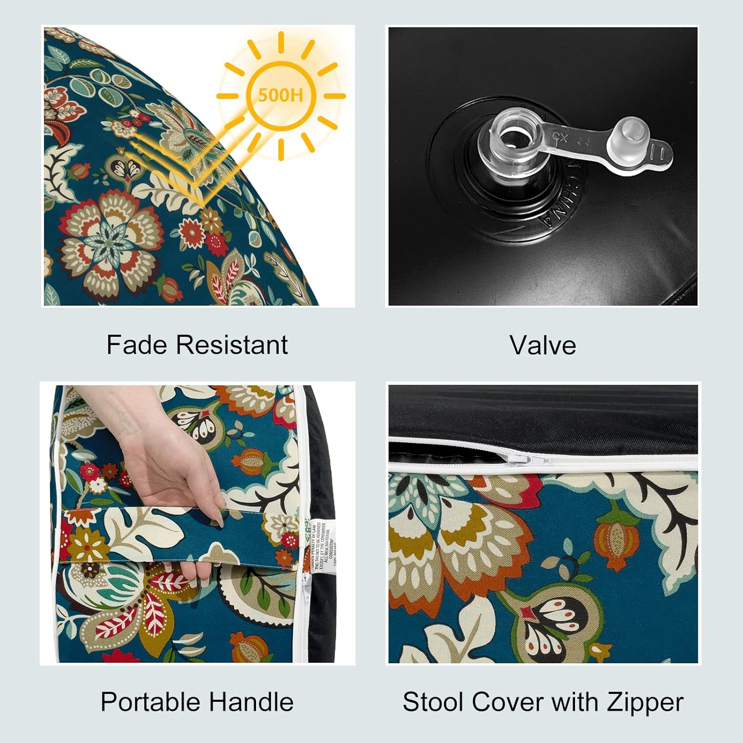 - Quality Support: 250 micrometer PVC liner ensures lasting durability against tears and punctures; outdoor ottoman is light weighted enough to carry, but can also bear up to 250 pounds (113kg). It brings you comfort even if an adult sit on it