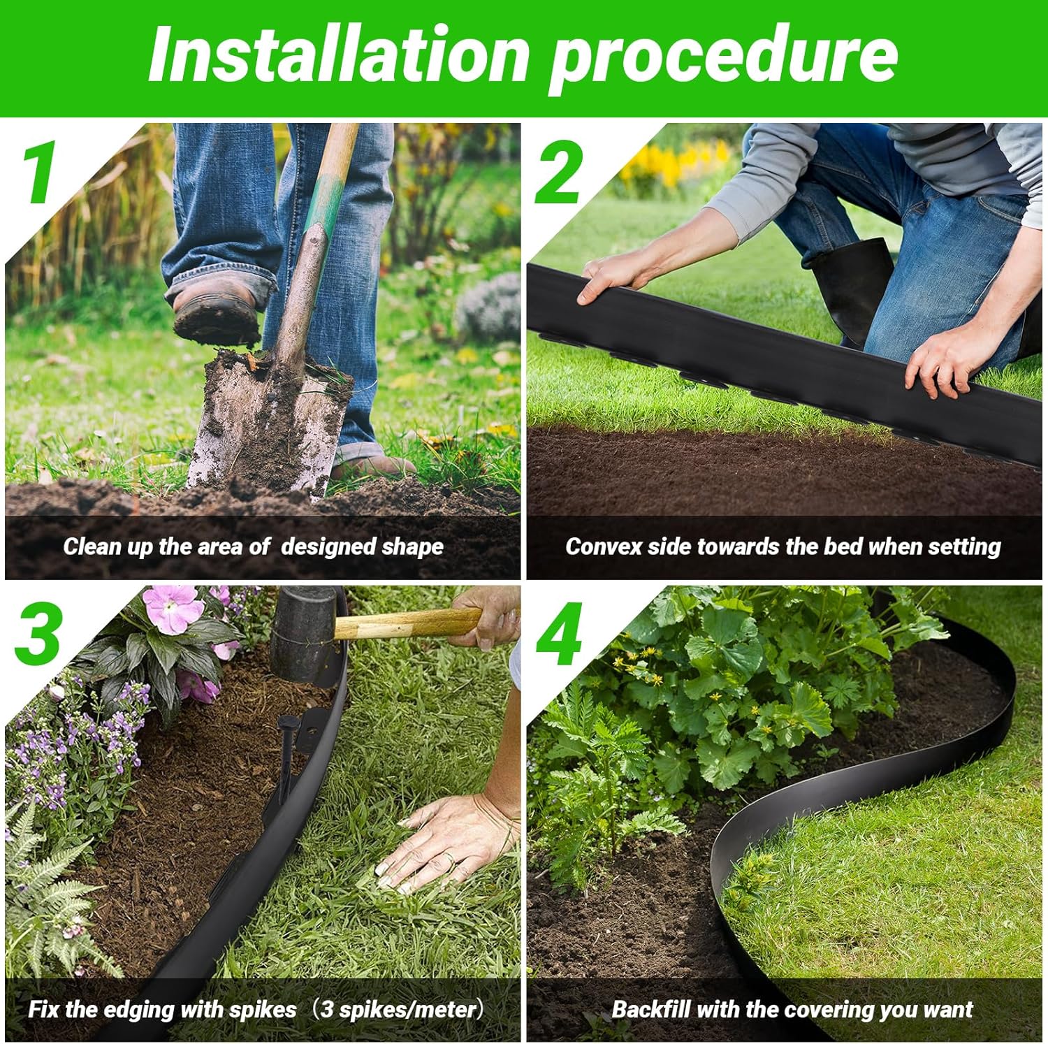 - 【Value Set】This set includes a 40-foot roll of 2-inch high black garden edging, along with 36 spiral plastic anchoring stakes and 35 durable metal G-nails—everything you need for a quick and easy installation to create a stunning landscape.