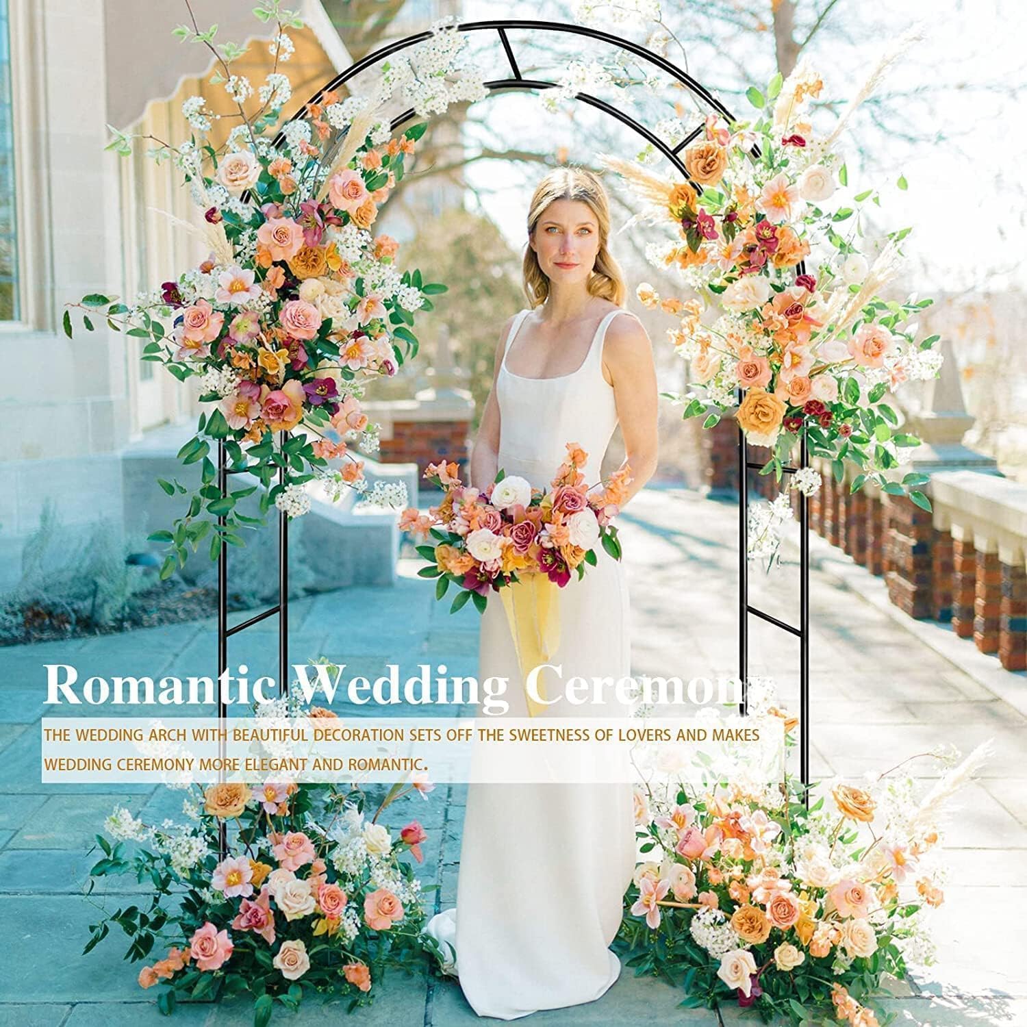 - Garden Arbor - Size & Material: Two optional assembly size: Wide Wedding Arch or High Garden Arbor. Each 0.8" thickened metal tube is coated in weather-resistant epoxy, strong and not easy to rust.