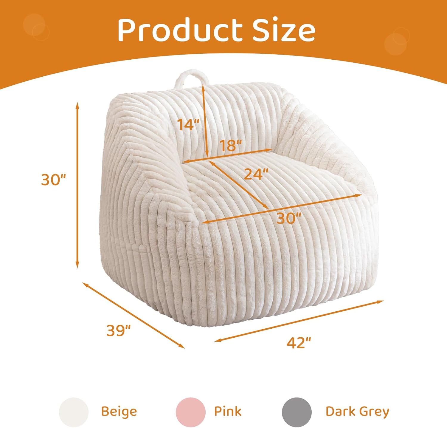 - Soft and Skin-Friendly Fabric: The fabric is made of soft faux fur and drawstring design fashion elements. The fabric has a unique texture, excellent warmth and soft texture, giving you a warm, fluffy and cozy feeling. The bean bag sofa combines beauty, comfort and durability to provide you with a great seating experience.