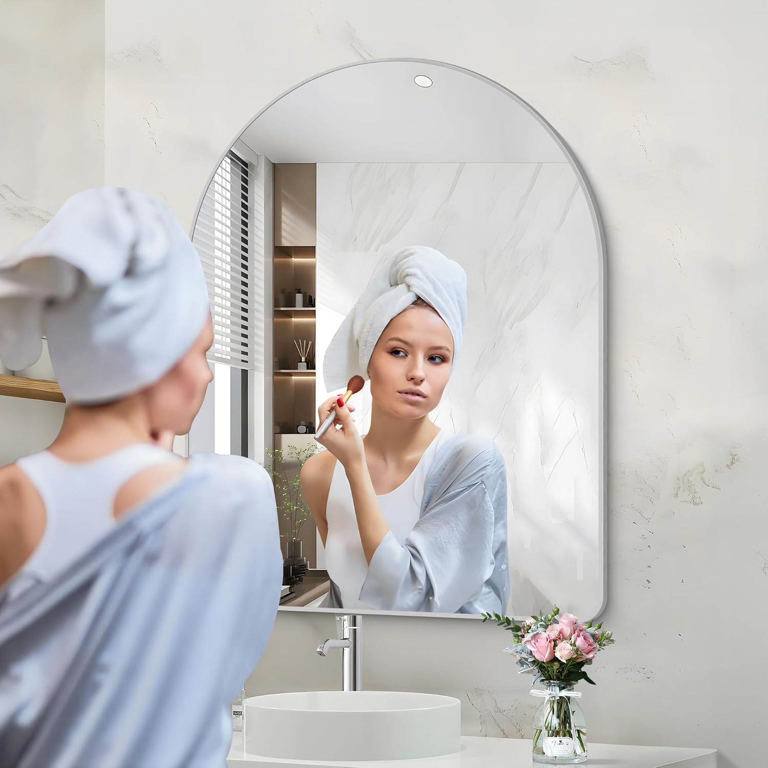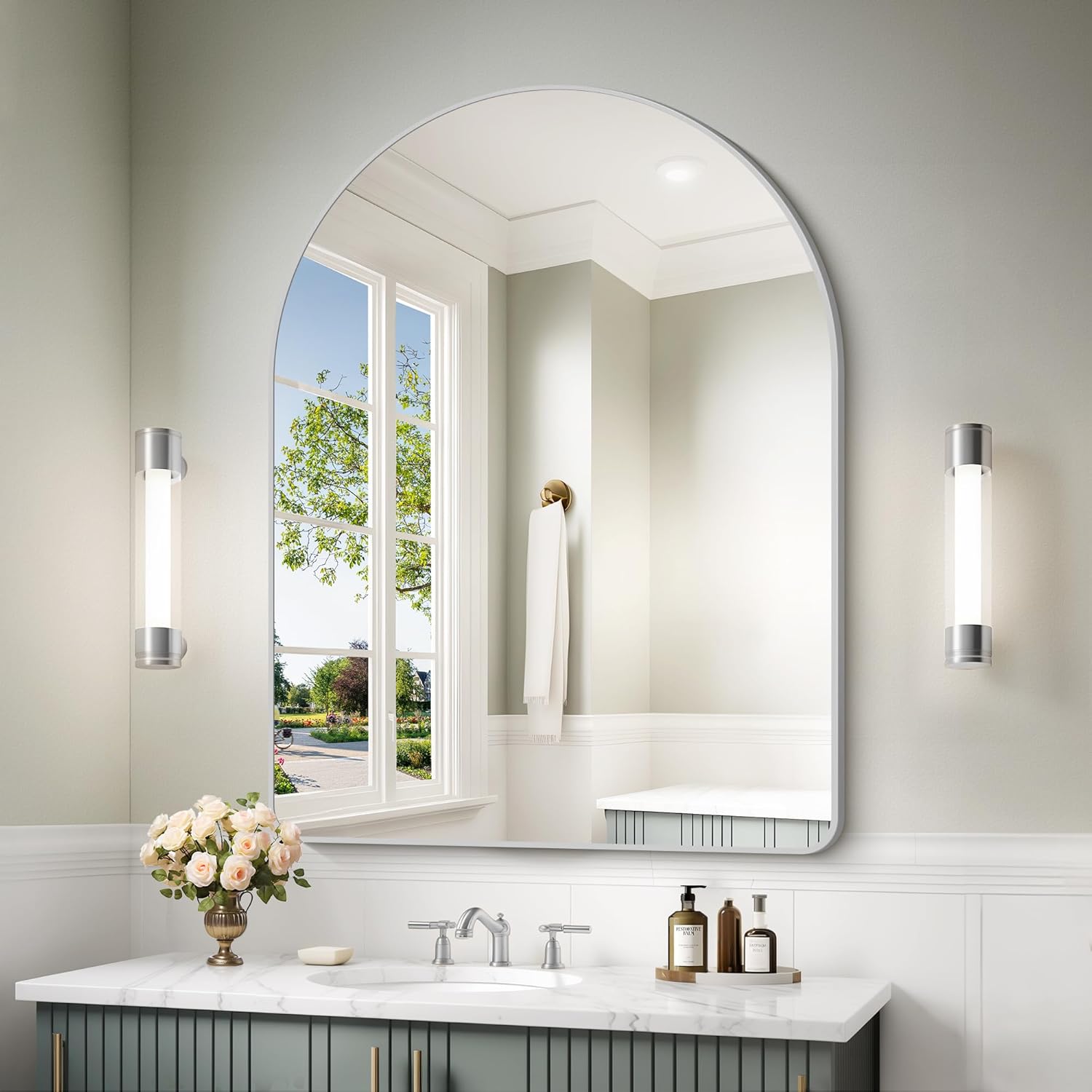 - Arched Bathroom Mirror Design: The Arched-top wall mirror makes your bathroom more elegant and classy, which especially attracts your eyes.bathroom mirrors for over sink,living room wall decor, silver arched mirror Ideal for wall mirrors decorative, silver mirror for bathroom make the space more brighter and spacious.
