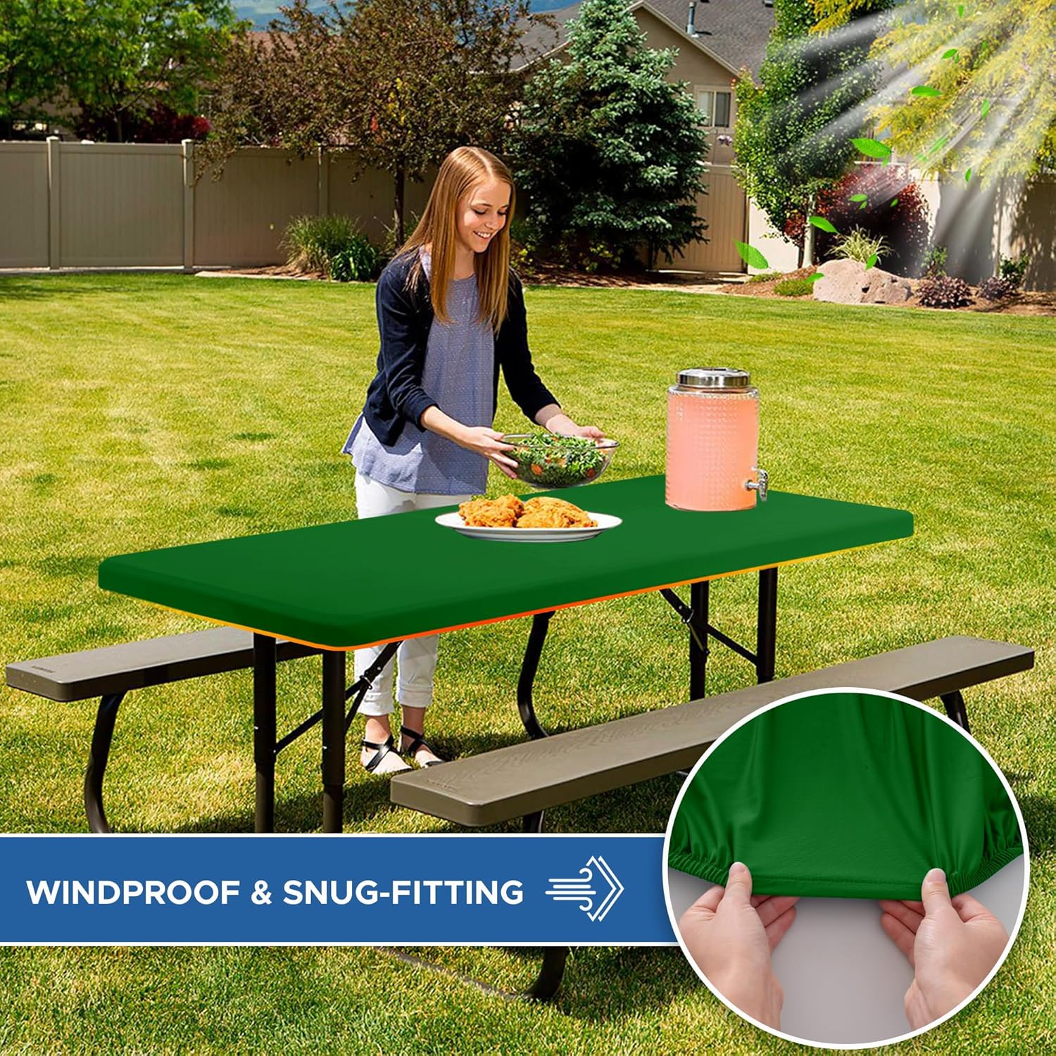 - Water-Repellent & Elastic Edge Design: This rectangle fitted stretch table clothes features an elastic edge design that securely grips the table, preventing shifting or sliding, and eliminating worries about being blown away. It ensures a perfect fit for your table. Made of stretch spandex, it can be easily stretched in all directions, offering both non-slip and windproof properties, providing stable support for your events.