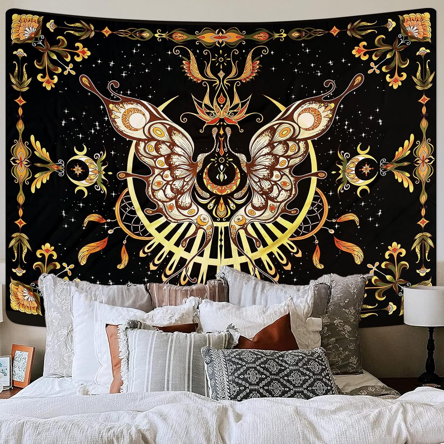 - 【Easy to Install】You only need to hang this bohemian butterfly tapestry with hooks, decorative pins, thumbtacks or metal ring clips.