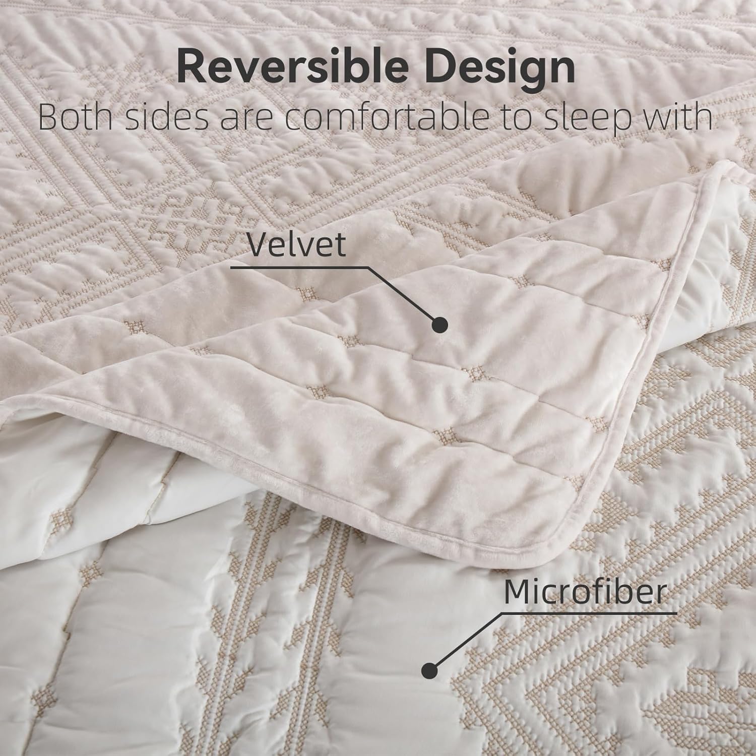 - DELICATE QUILT SET: Embroidery white velvet quilt set; The quilt features soft velvet on the front and premium brushed microfiber on the back; The front side is embroidered with beautiful boho style plaid patterns. It brings luxurious and classy look to your bedroom decoration. It will brighten your room.