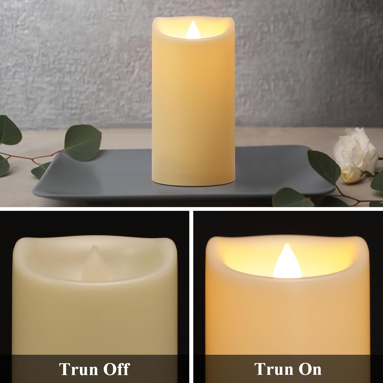 - IP44 Waterproof: Our flickering flameless candles are made of plastic. There is a pre-embedded waterproof rubber ring has been set at bottom of the candle. The bottom cap will protect batteries and switch. It is worth noting that the wick and candle body are integrated, no worries about leakage.Tips: The screw-on bottom cap should be tightened