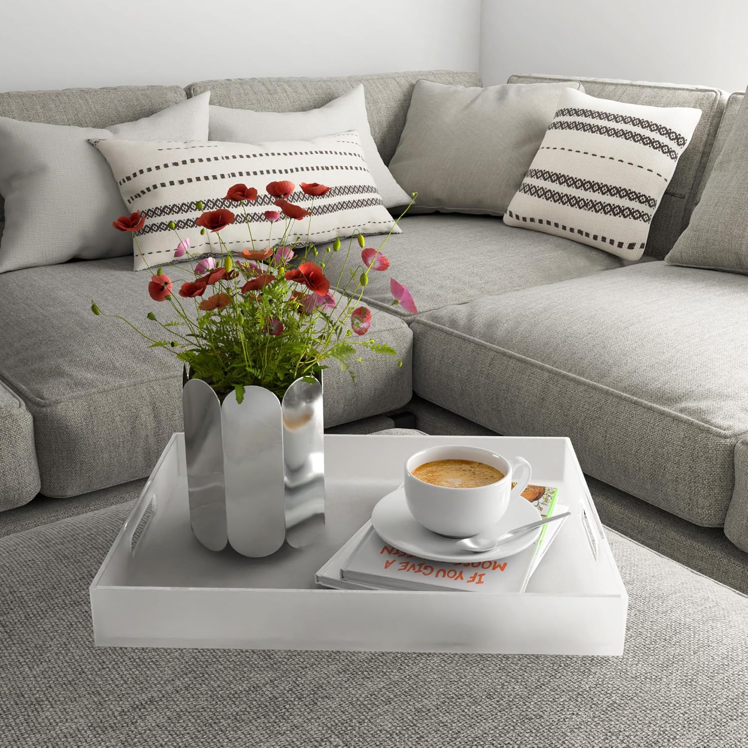 - LARGE SERVING TRAY: Outer dimension: 15.7 x 11.8 x 2 inch / 40 x 30 x 5 cm, this is not a small acrylic tray, Unlike many other coffee trays which arrive much smaller than expected, we can promise this is a large acrylic tray!