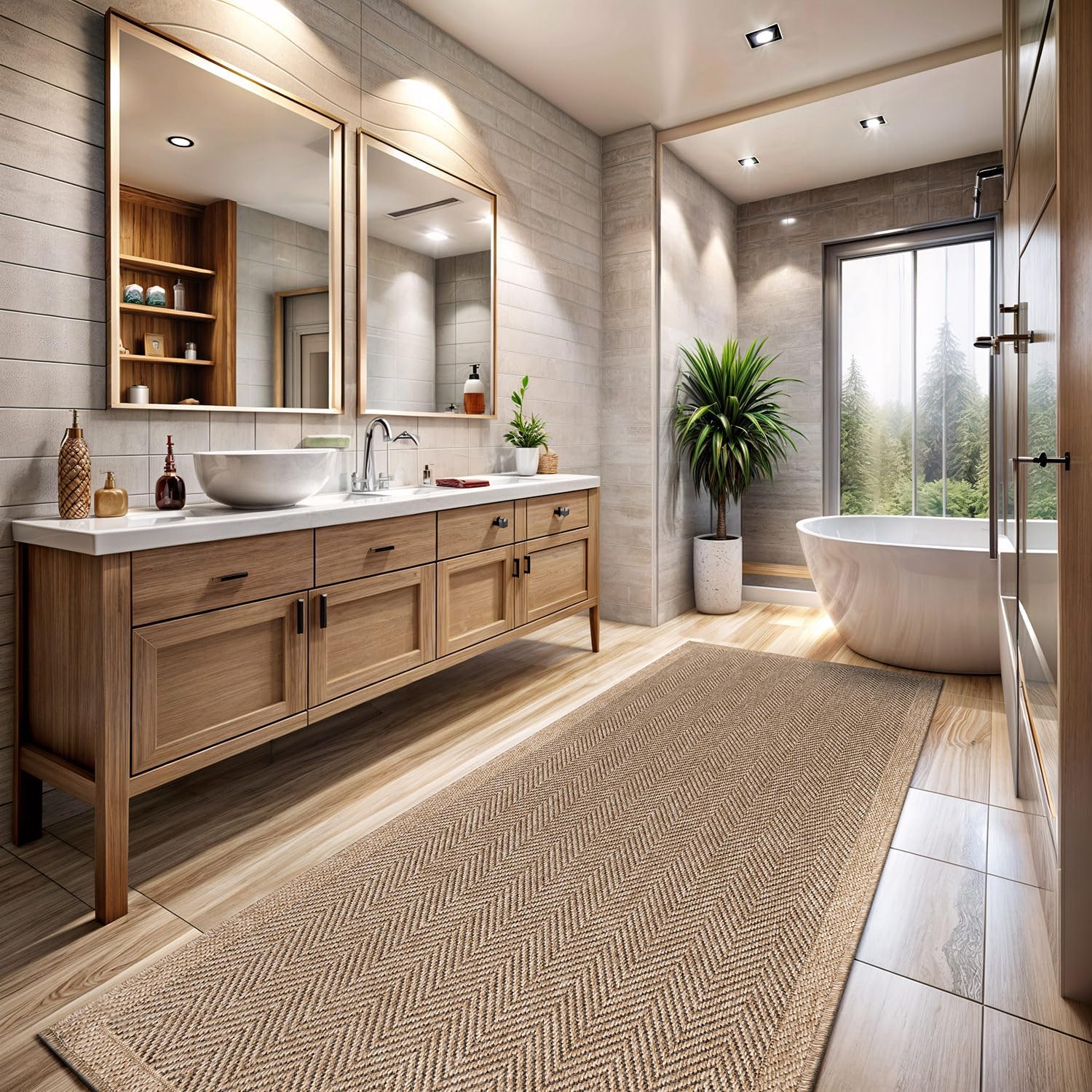 - [ EASY JUTE RUG ] Experience the enchantment of a resilient rug mimicking the appearance of natural jute, courtesy of our latest Easy-Jute rugs. (Jute-free in reality) Crafted from secure polypropylene, these rugs are resistant to cracking, ensuring they remain free from scratches, shedding, or unraveling over time.