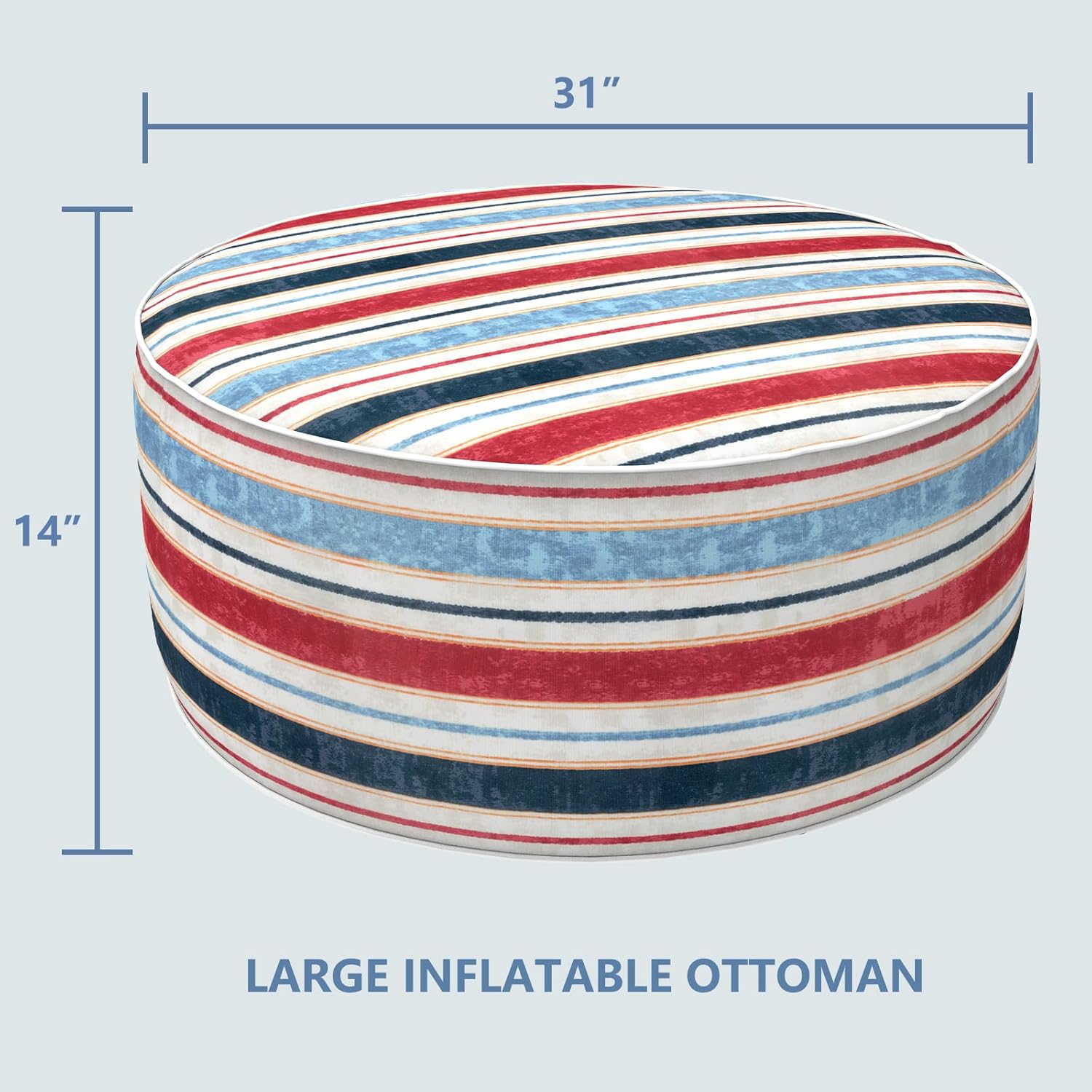 LVTXIII Outdoor Inflatable Ottoman, Fade-Resistant Round Footrest Stool D31”x H14”, Portable Patio Pouf for Garden Camping or Home Use, Stripe Red Blue