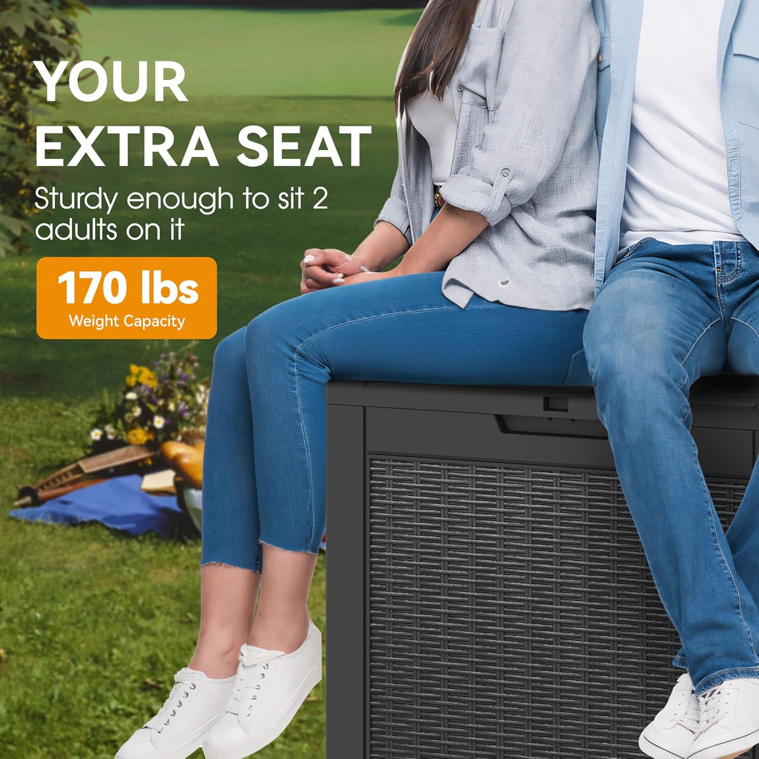 - 🌵【PORTABLE & SECURE】Outdoor storage bin with hidden double side handles, the storage box is easy to move around at any time; additional locking holes are designed to provide extra security for stored personal belongings.