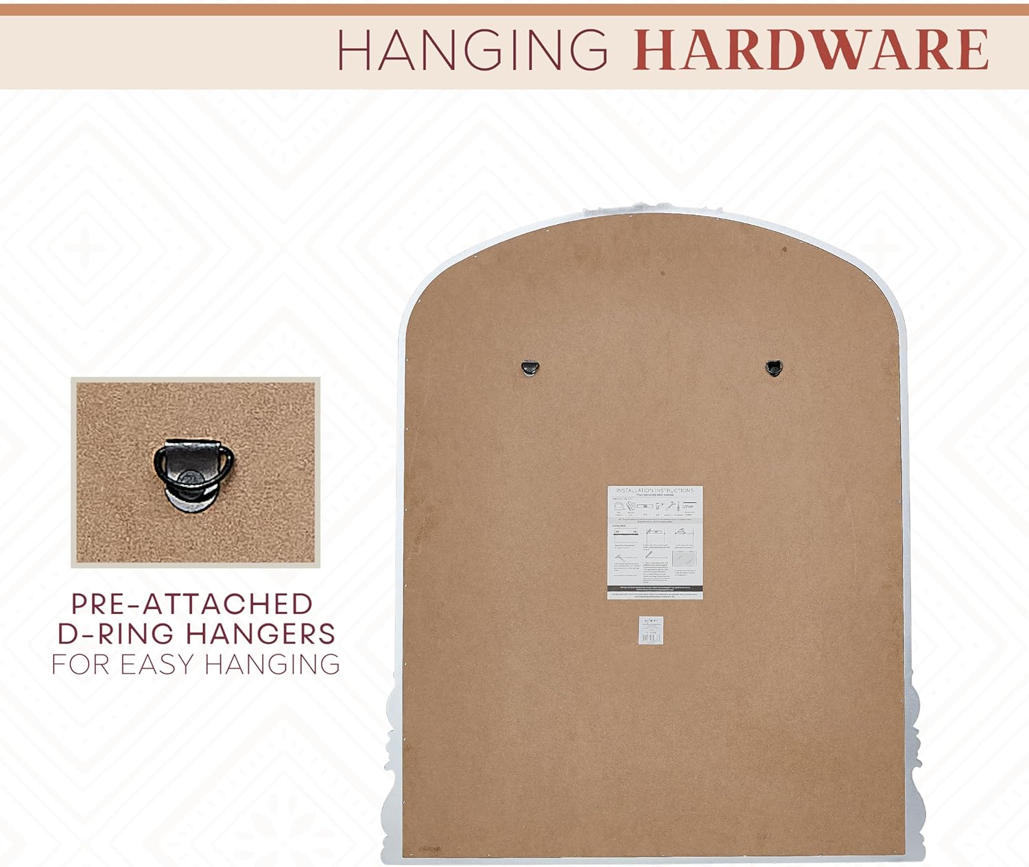 - EASY TO HANG: This mirror includes pre-attached d-ring hangers for vertical wall hanging.
