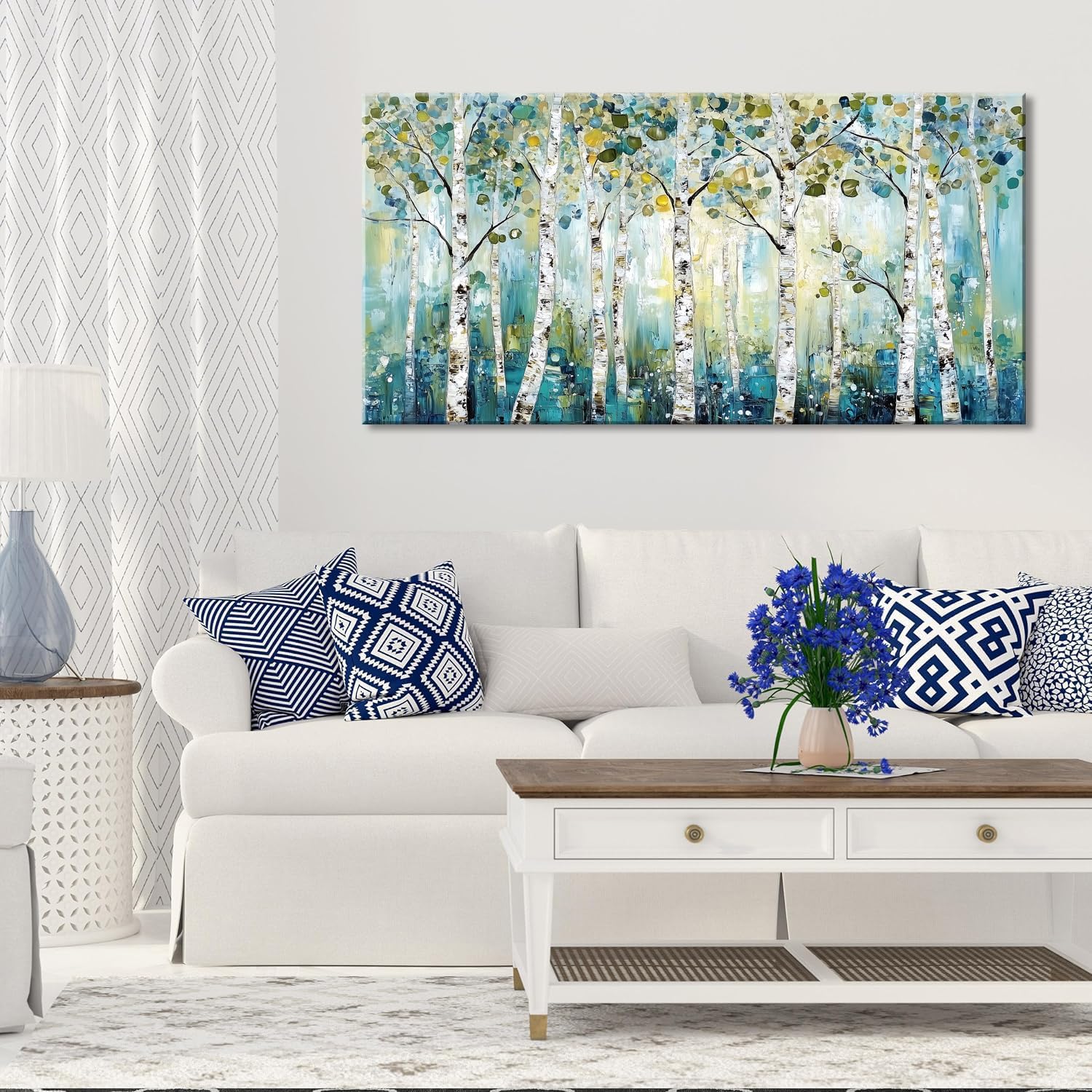LASMOND Abstract Teal Grove Canvas Paintings Prints Modern Tree Wood Artwork Decor Wall Art for Living Room Bedroom Offices (40x20 Inches)
