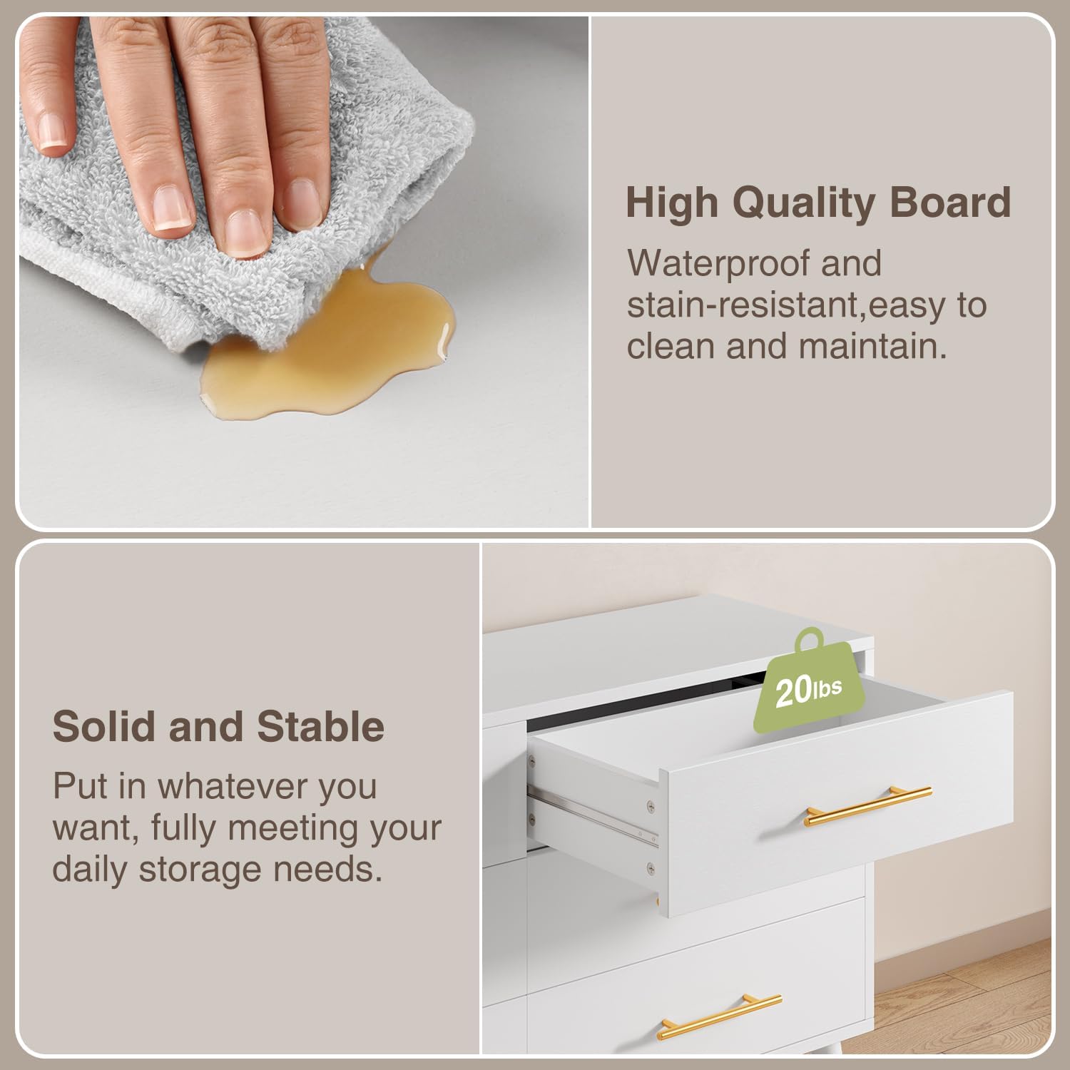 - Durable Dresser: This chest of drawers is made of quality engineered wood, 5 wooden legs provide strong support to make the dresser more stable