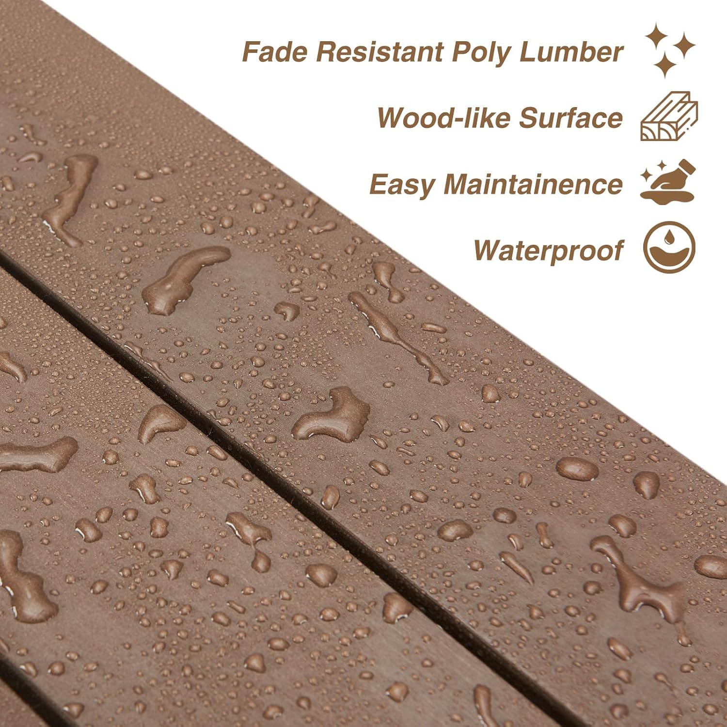 - Just Like Real Wood: The Psilvam Patio Bench features a unique wood-like color technology that eliminates exaggerated wood grain typical of traditional poly lumber. The result is a bench with a natural, pure wood texture that is so realistic, it’s hard to distinguish from high-grade solid wood.