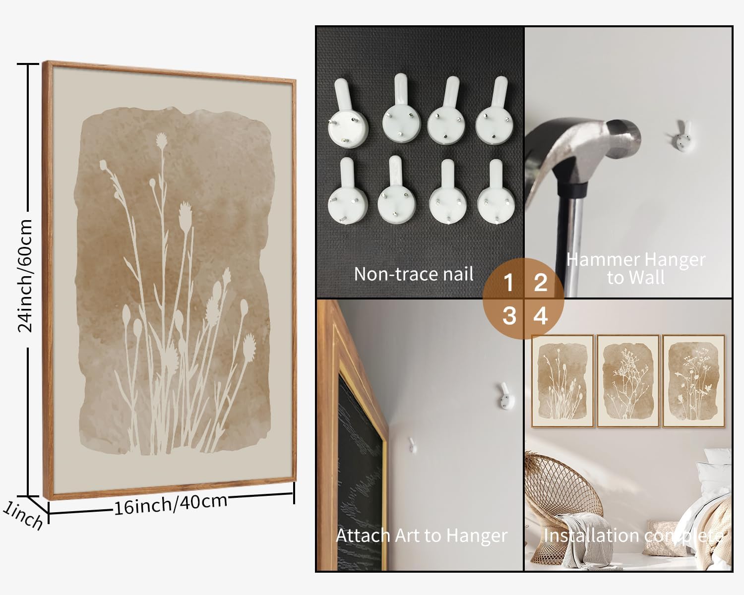 SIGNINART Boho Botanical Framed Canvas Wall Art Set, Neutral Wildflower Wall Decor, Vintage Floral Wall Painting, Art Print for Farmhouse Living Room, Bedroom, Office, Bathroom 16"x24"x3