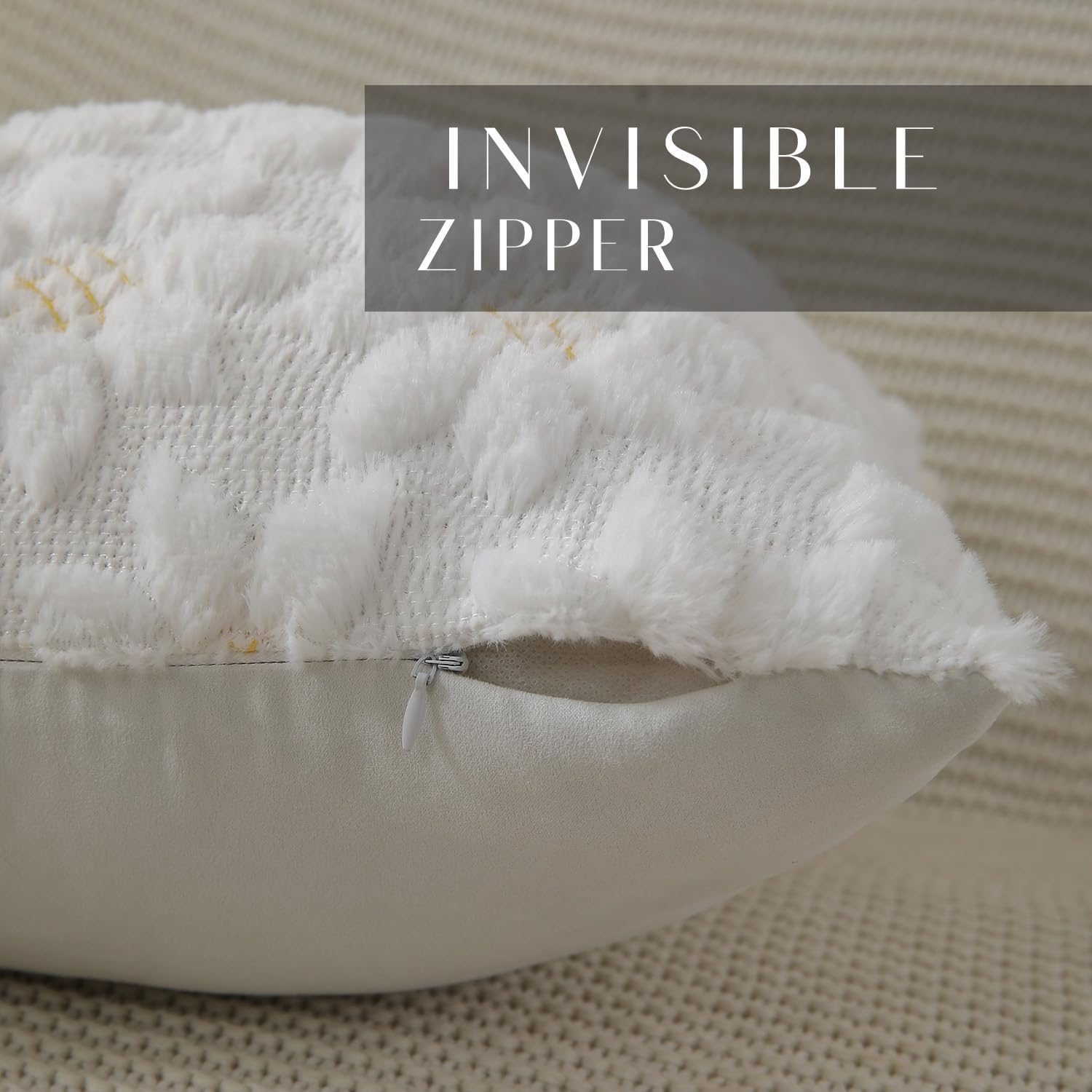 DFXSZ Spring Summer Pillow Covers 18x18 inch Set of 2 Farmhouse Decor Yellow Color Flower Heart Sunflower Soft Plush Faux Fur Jacquard Throw Pillows for Sofa Holiday Spring Home Decor PTK024C18