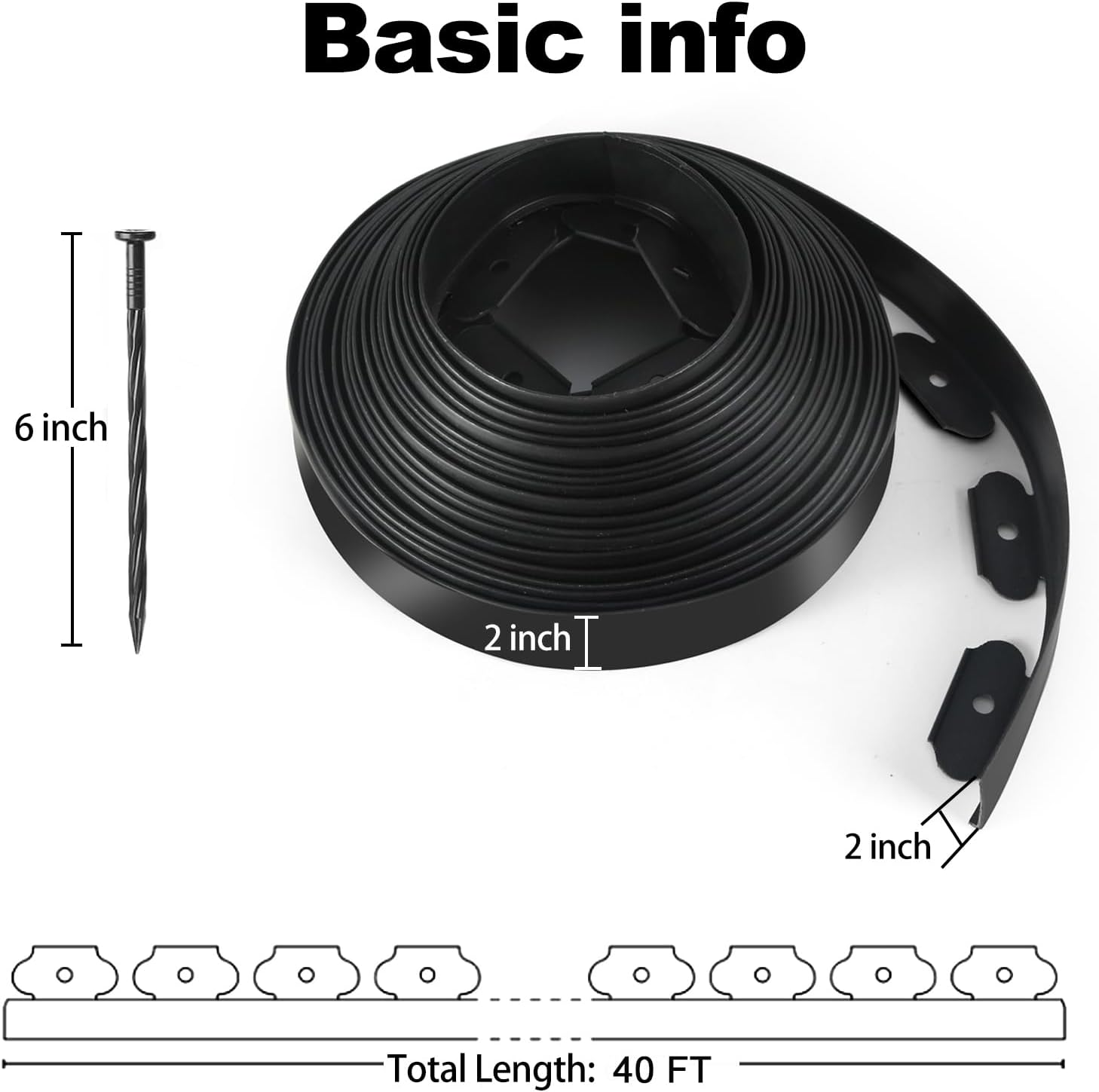 - What You Get: Our landscape edging kit contains a roll of 2 inch high/ 40 FT length lawn edging and 48pcs anchoring spikes(Stake it every 2-3 holes to effortlessly achieve your desired design), which can meet your daily use needs and help you to create a beautiful and neat garden.