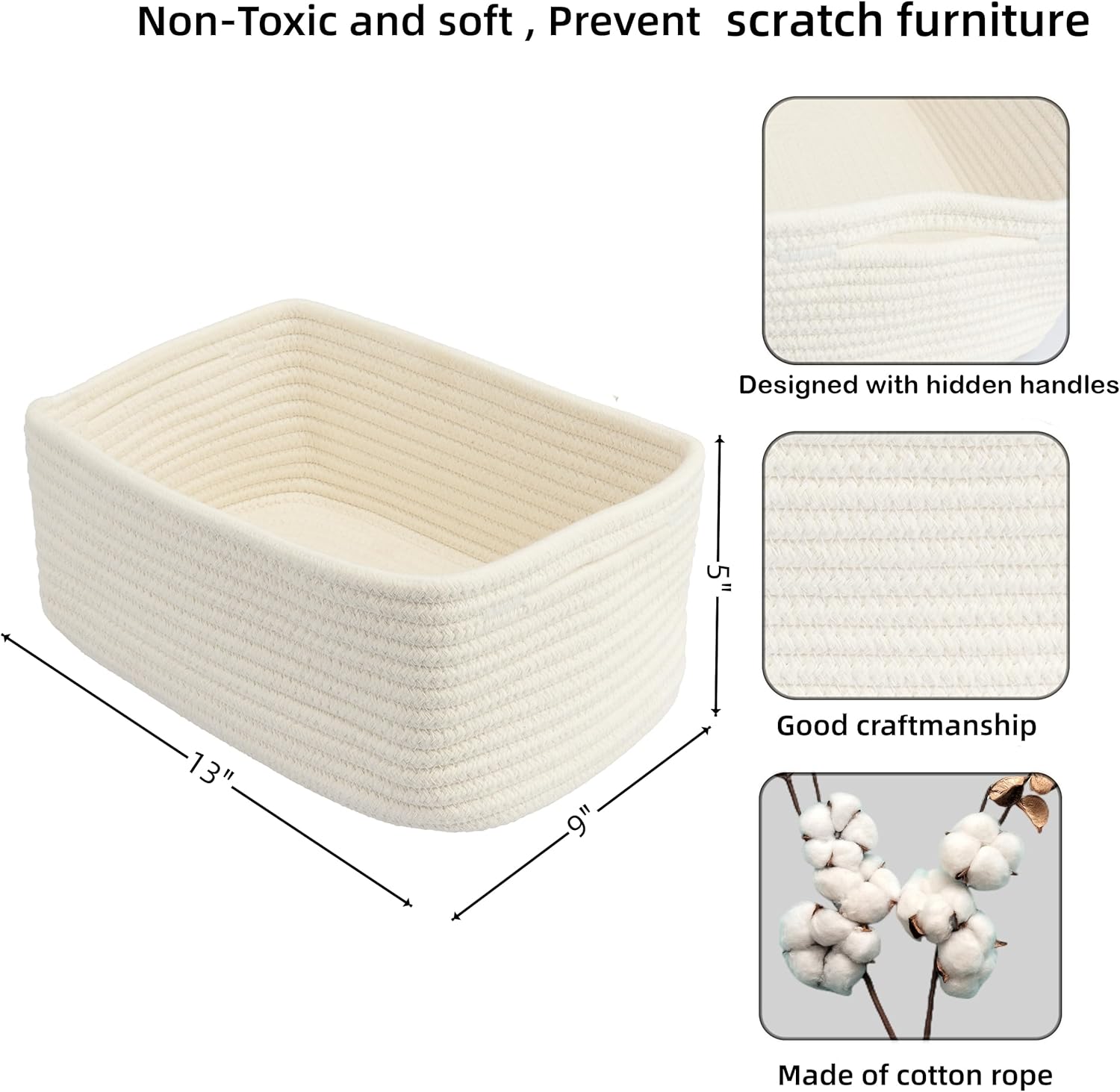 - Soft, Durable, and Safe: Crafted from 100% natural cotton rope, these baskets are soft to the touch, free from harsh chemicals, and safe for kids and pets. Handwoven by skilled artisans, the sturdy construction ensures long-lasting quality without sharp edges.
