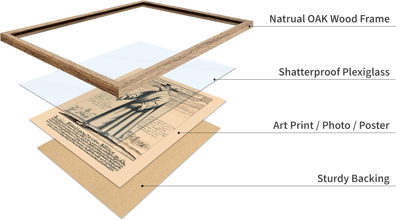 Poster Master Vintage Medieval Poster - Retro Illustration Print - Gift for Friend - Plague Doctor, Pandemic Mask, Physician, Black Death - Wall Decor for Home, Living Room, 16x20 Beige Framed