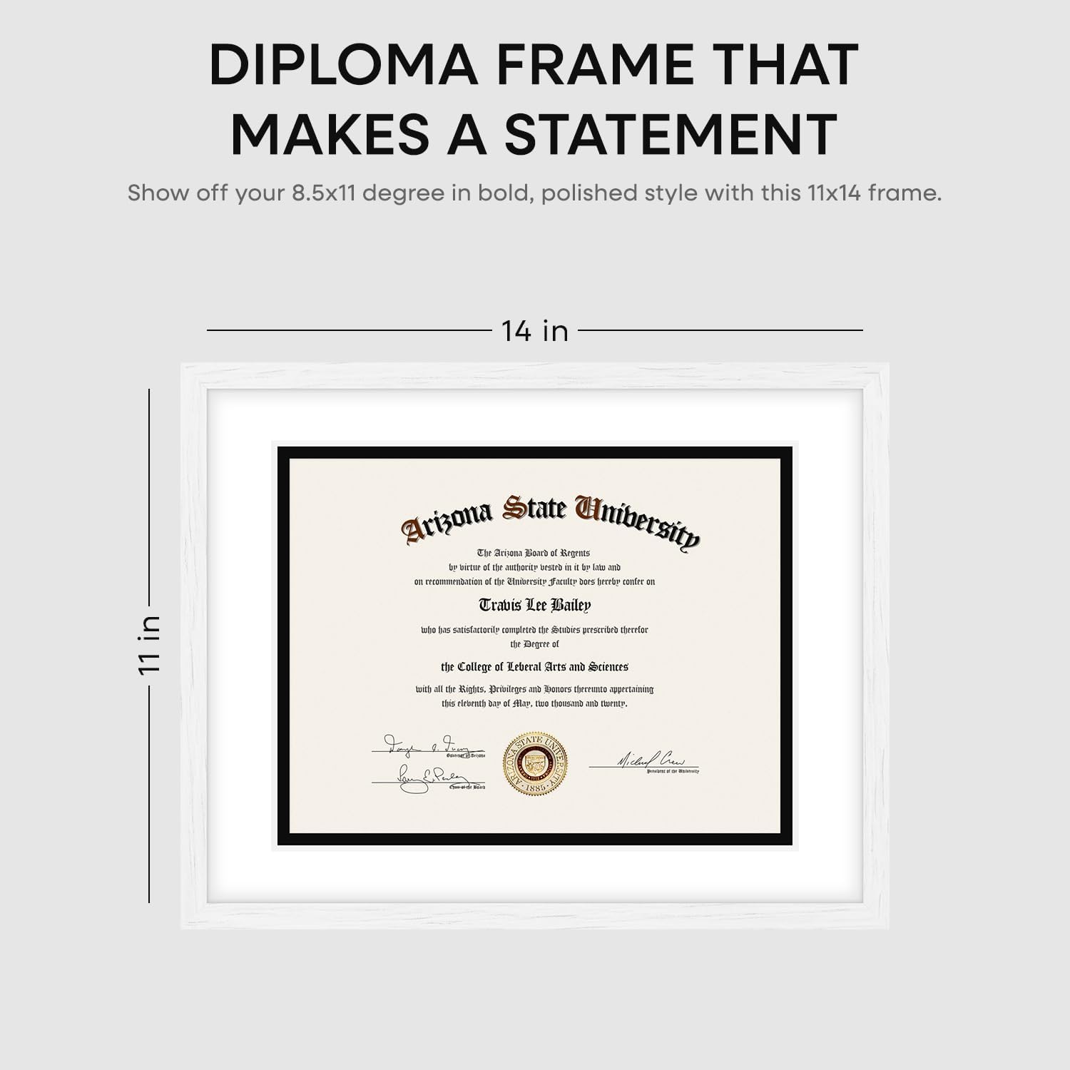 Homeforia 11x14 White Diploma Frame, High End Black Oak 11 x 14 Certificate Wood Frames with Mat 8.5x11, 14x11 Wooden Document Matted Frame, Award Graduation Frames, Tempered Glass, Wall Kit, Set of 1