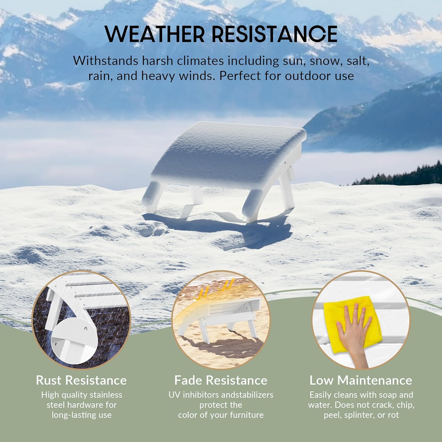 - All Weather Resistant: This Adirondack foot rest are made of HDPE plastic, its weather resistant and UV fade resistant material can withstand in various enviromental pressure and not easy to dent, crack , peel or rot as wood.