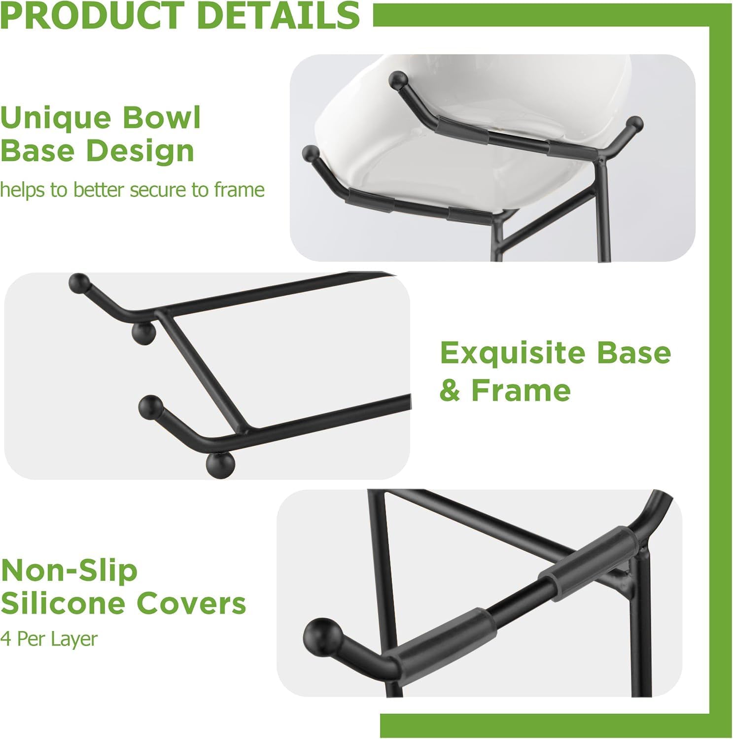 - 【Rock-Solid Stability System】: Features 4 non-slip silicone covers per tier that grip bowls securely. Holds fruits firmly with zero wobbling, even when fully loaded as a large fruit bowl.