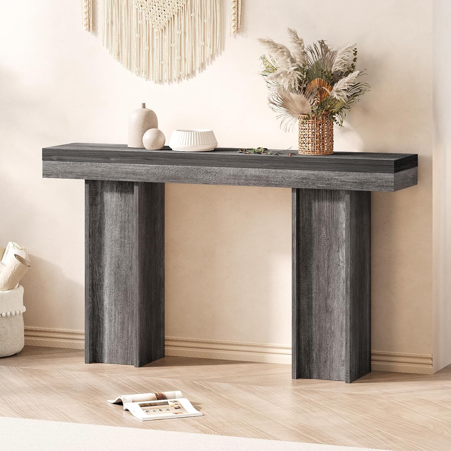- 【Farmhouse Entryway Table】This colorway and wood grain design add a pop of color to any entryway, creating a vibrant focal point. This versatile style is perfect for modern, industrial, or traditional homes.
