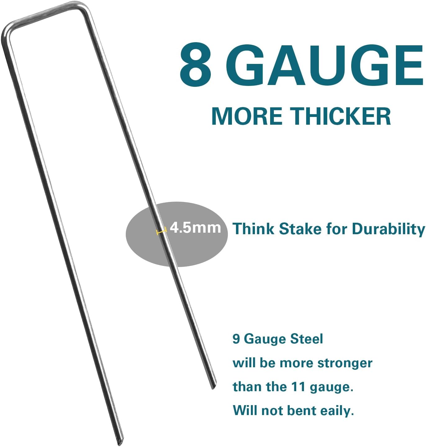 - TIPPED DESIGN: The pointed ends of the ground stakes are designed to be sharp for easy installation. It is easy to penetrate in the face of ground cover, fences and artificial grass.