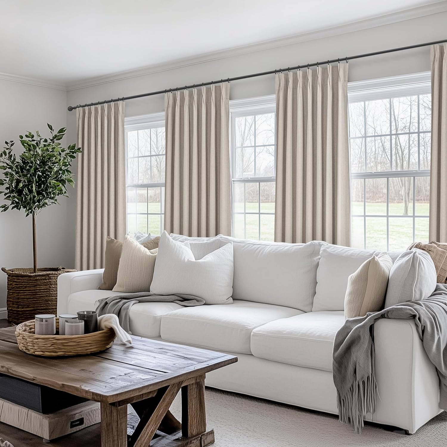 - Pinch Pleats Design:Each panel has 7 pleats.linen draperies are crafted from blended fabric(30%linen,70%polyester),drapes well and not easy-wrinkle.Suitable for various styles:modern,farmhouse,boho,neutral,bedroom,living room,nursery,sliding door,etc.