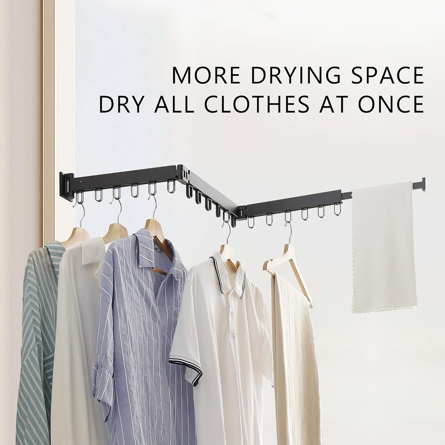 - Sturdy and Durable: This clothes drying rack wall mounted is perforated for installation;The collapsible drying racks for laundry is heavy and durable, can withstand greater weight.The collapsible drying racks for laundry can hang a large number of clothes at one time