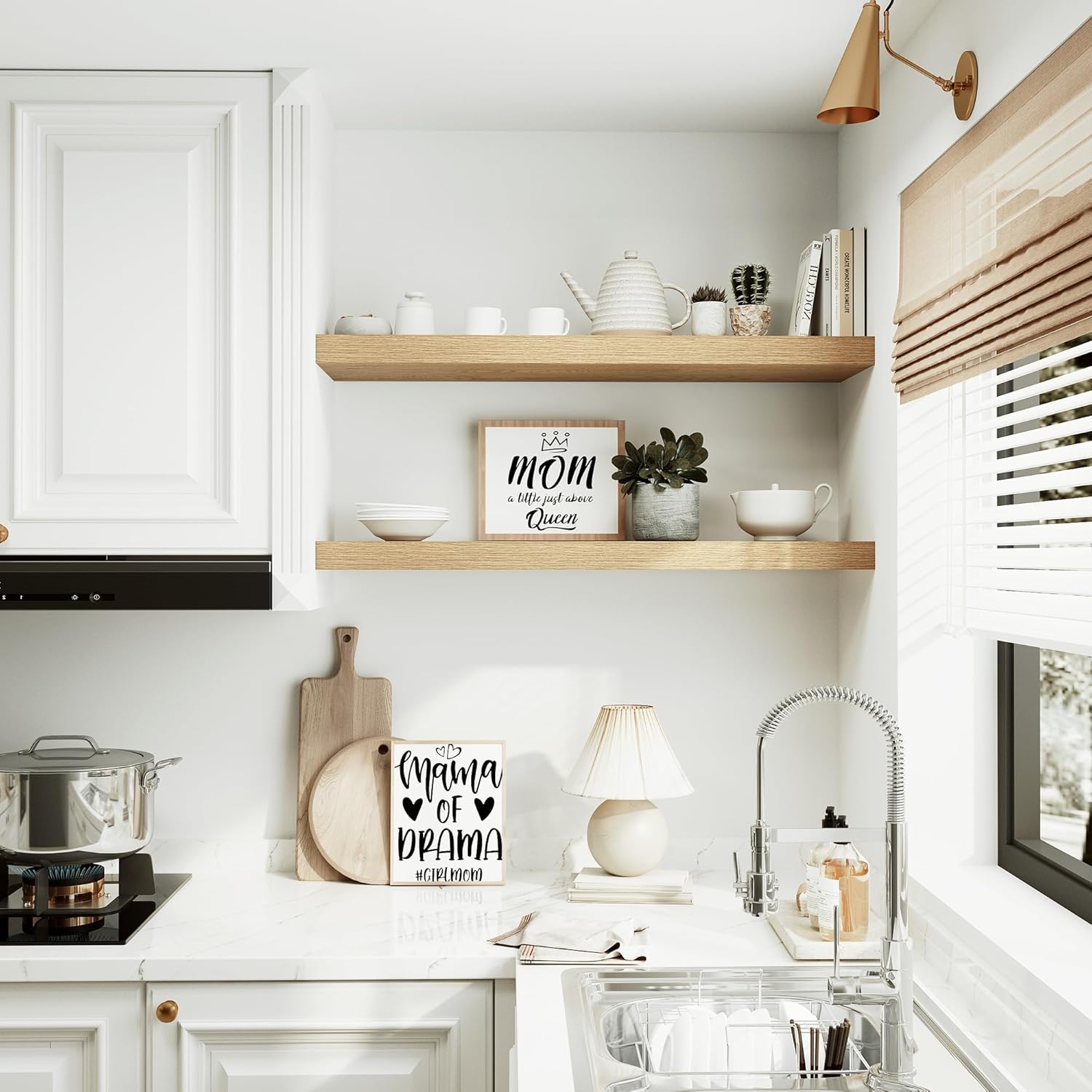 - Versatile & Functional - Our Decorative shelf for wall Adds character to any modern, traditional, rustic, or farmhouse decor home & kitchen styles.These shelves for wall decor above a small desk in your guest room, desks, fireplaces, over toilet storage shelf,living room wall decor, corner bookshelf, bathroom decor, office wall decor,or vanities and so on. If you are seeking easy-to-install, stylish floating shelves to add a contemporary touch to your home, these shelves are an excellent choice.