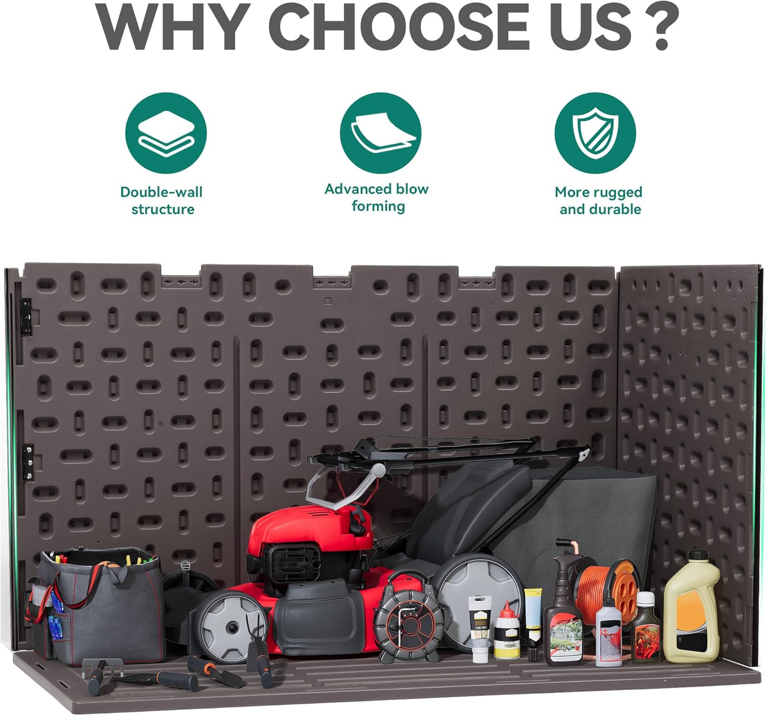 - Double-wall Construction: Unique dual wall structure raises sturdiness & durability to the next level; All-weather guard resin pairs with wooden texture to impart a sleek texture for lasting outdoor use
