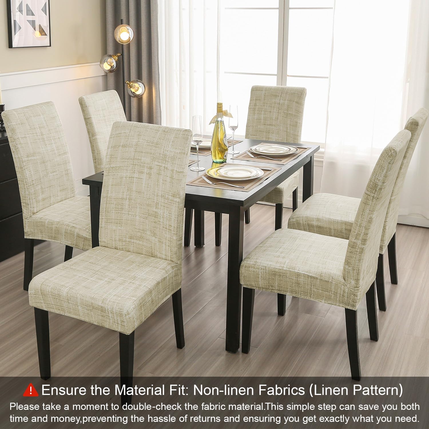 - 【High Quality of Chair Cover】- JQinHome dining room chair covers are made of durable and high persistence polyester and stretchy spandex fabric, soft, comfortable and wrinkle resistant, no ironing required; Stretchable Material,stretch that recovers quickly,secure fit with sewn-in elastic hem.
