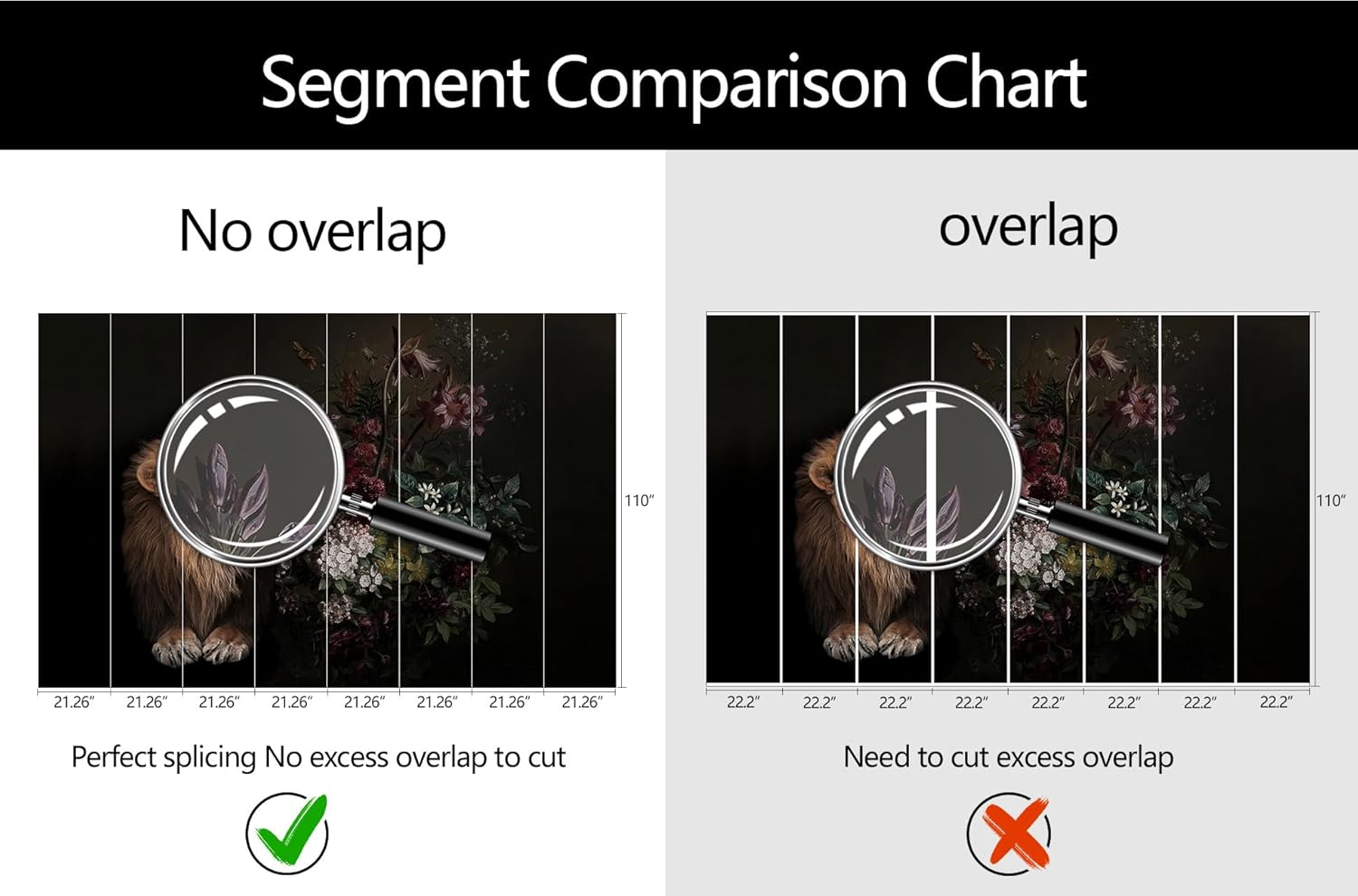 - Mural Size: The total size of this mural wallpaper is 170" x 110" / 432CM x 280CM (W x H), cut into 8 pieces, each measuring 21.26" x 110", for easy installation.