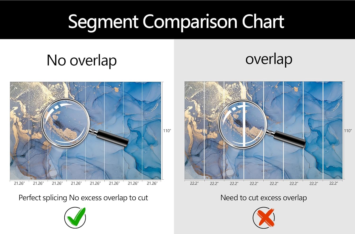 - Mural Size: The total size of this mural wallpaper is 170" x 110" / 432CM x 280CM (W x H), cut into 8 pieces, each measuring 21.26" x 110", for easy installation.
