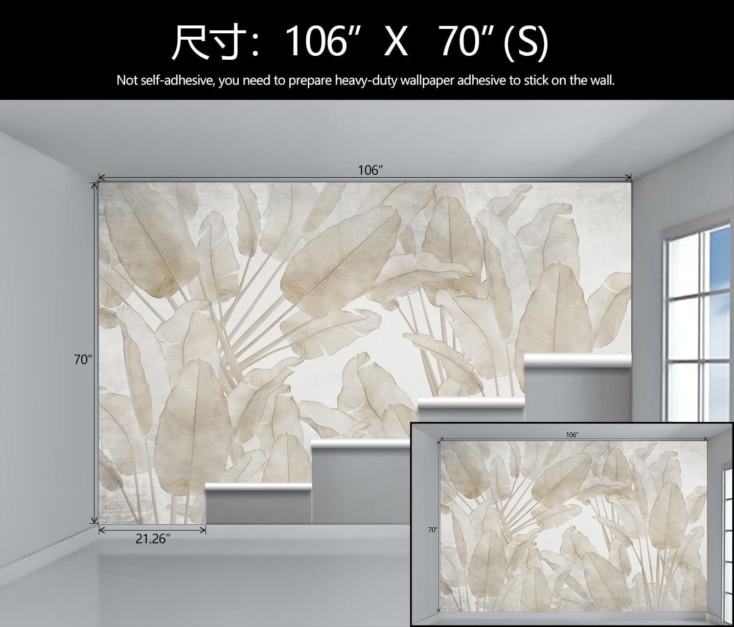 Banana Leaf Wallpaper Beige Tropical Plants Leaves Wall Mural Living Room Bedroom (Not Peel and Stick)