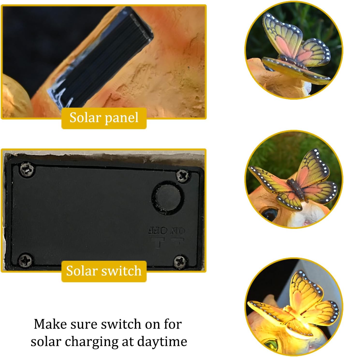 - ▶ Convenience - Cat solar light design will automatically charge and store energy during the daytime, only light up at night or in the dark automatically. You just push the OFF switch to ON for automatic activation at sundown.