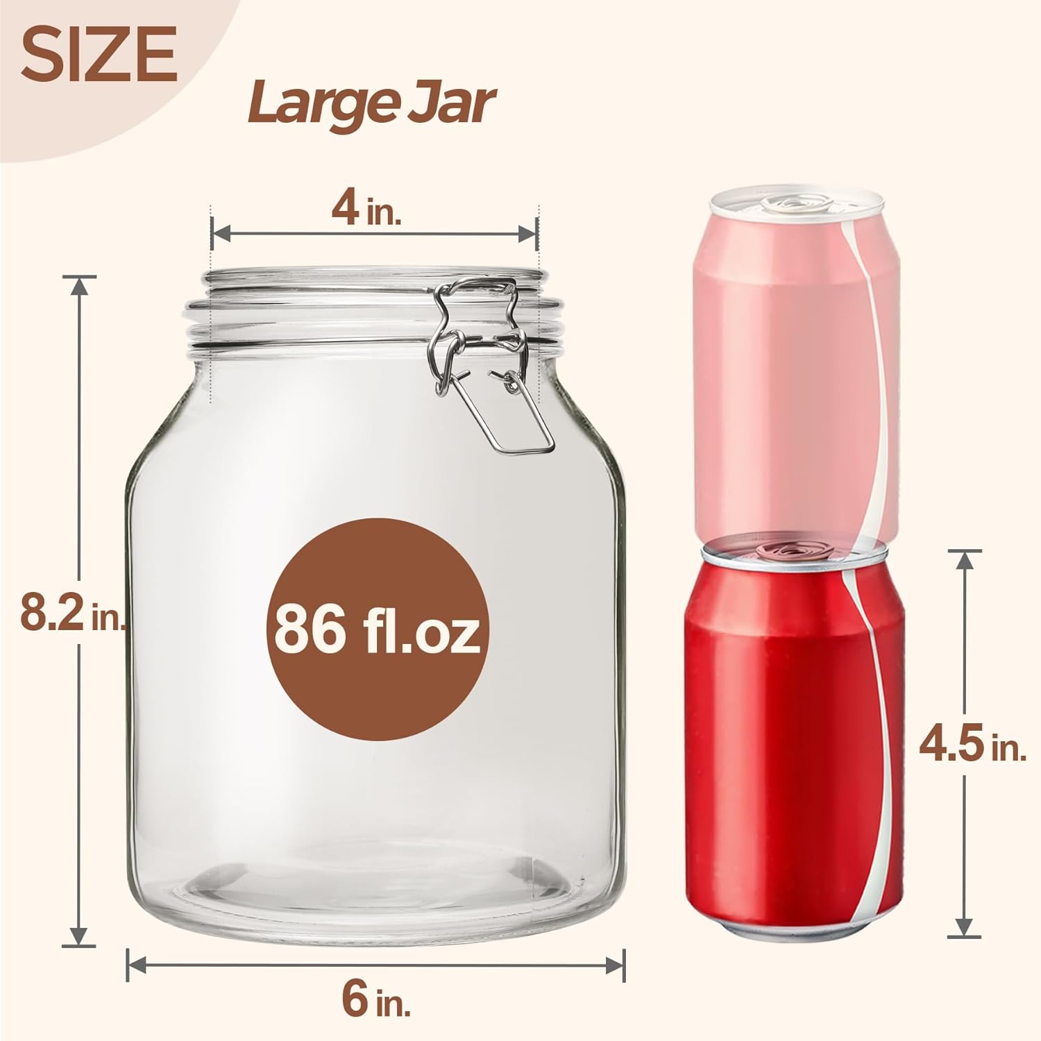 - Durable Glass Jar: The big glass jars are made of thick, heavy duty, food-grade glass, very durable, not easy to break; The glass jar has no air pockets, offering both visual clarity and structural strength, so you can check food levels at a glance