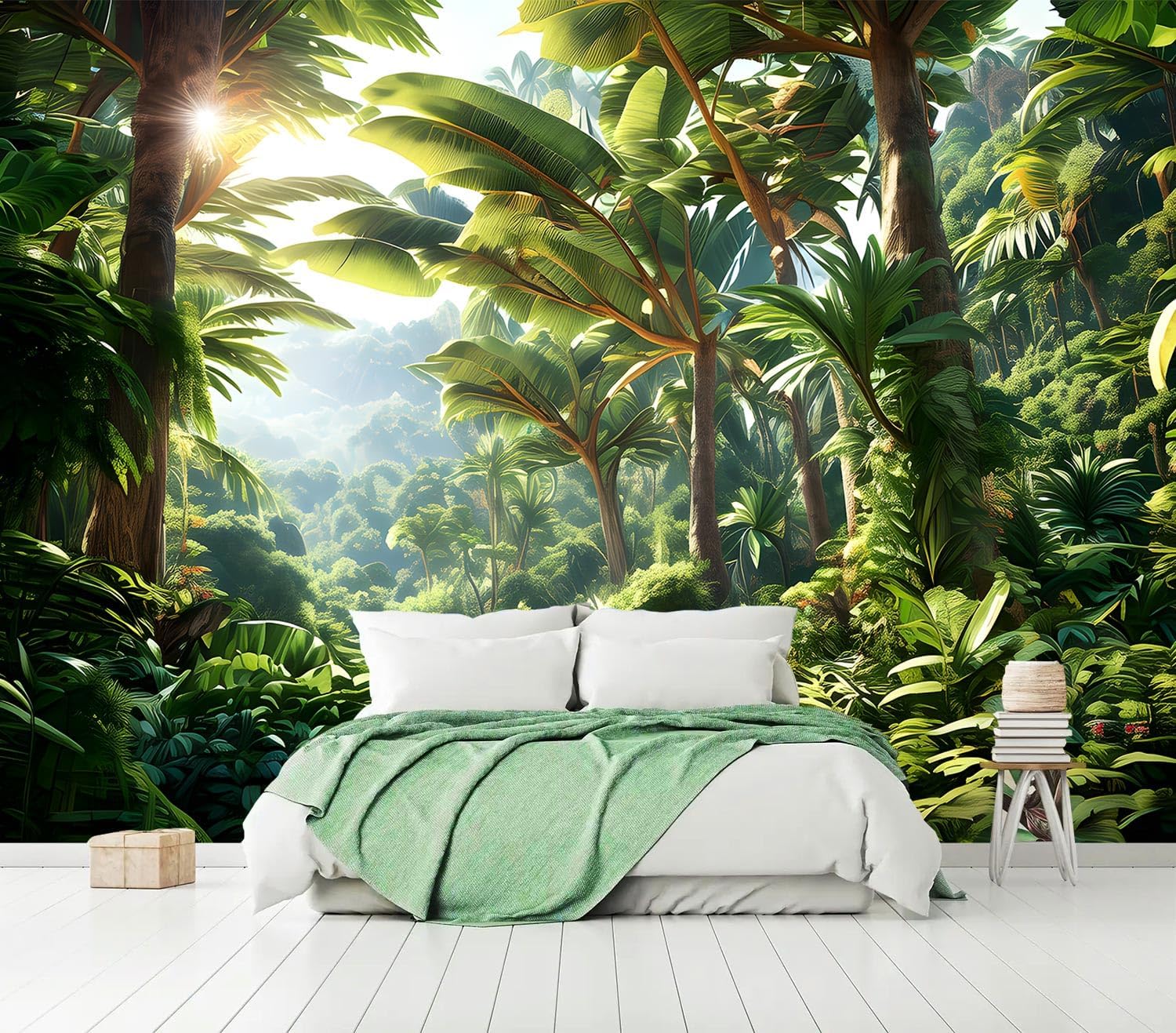 AFZEVEB-Green Tree Wall Mural Tropical Jungle Wallpaper for Bedroom 159"x107"(Not Peel and Stick)